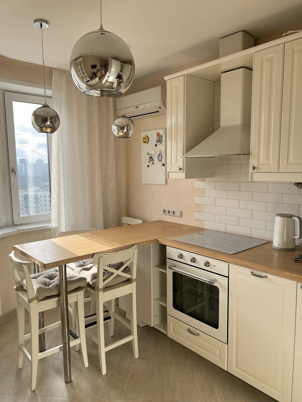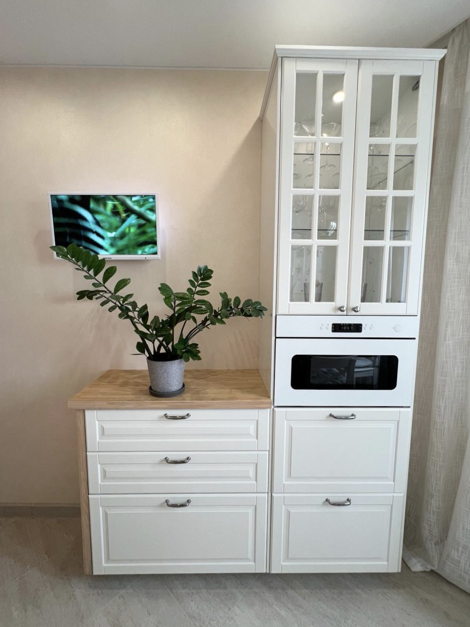 Квартира меблирована и оснащена качественной, встраиваемой техникой: варочная панель, духовой шкаф, вытяжка, микроволновая печь и посудомоечная машина, холодильник.