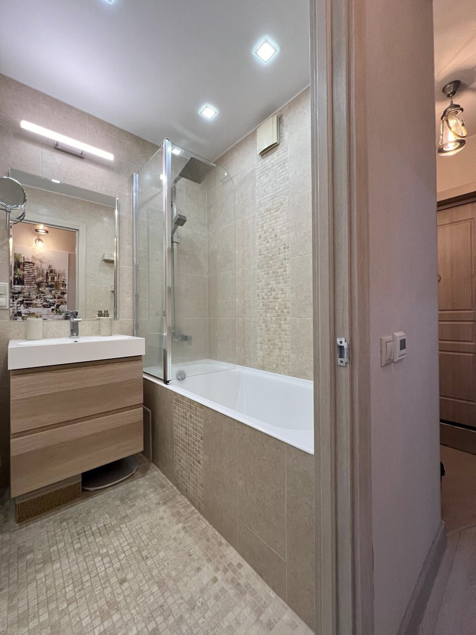 Проведена новая электрика, произведена установка сантехники и сантехнического шкафа.