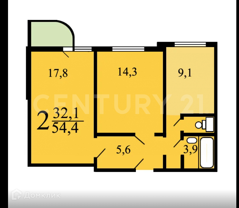 Жилая площадь 32 м2