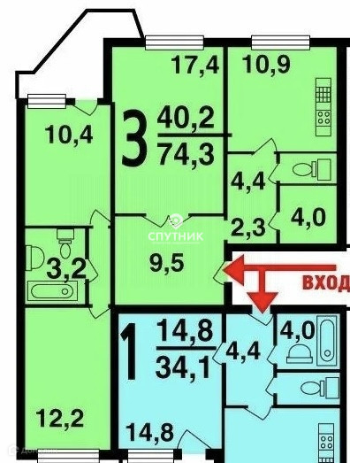 Общая площадь 74.1 м2