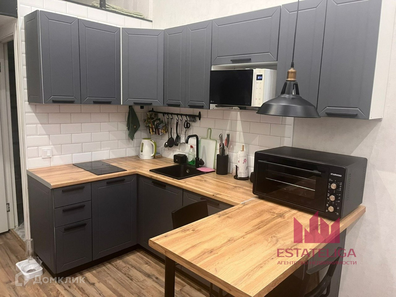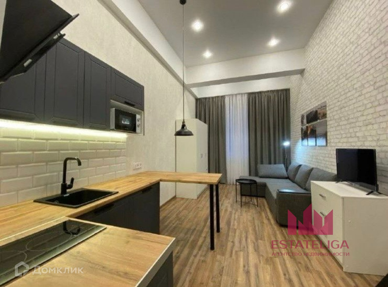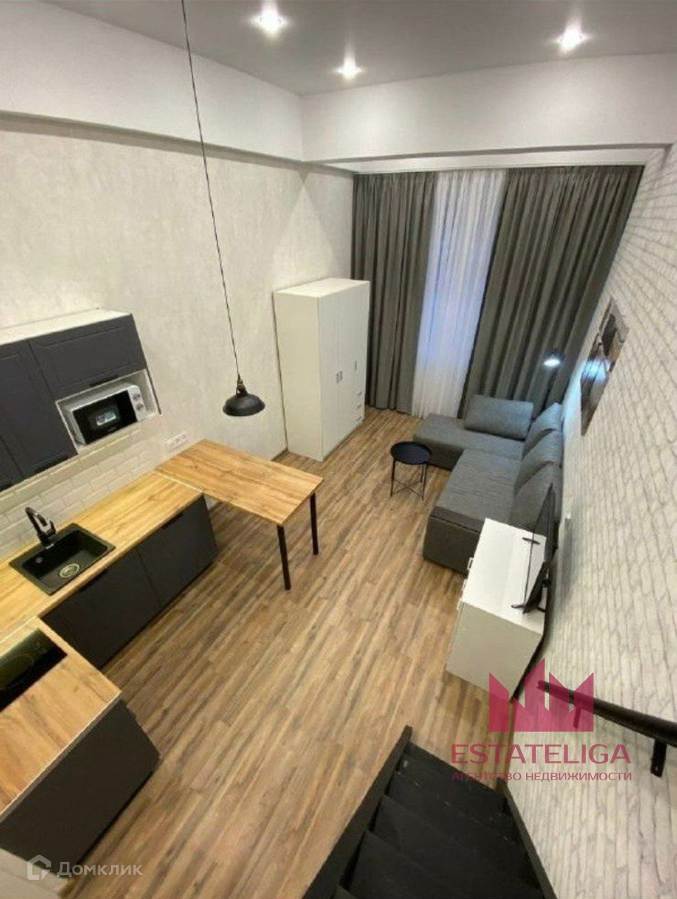 Студия продается со всей мебелью и техникой (диван, матрац, шкаф, кухонный гарнитур, СВЧ печь и т.д.)