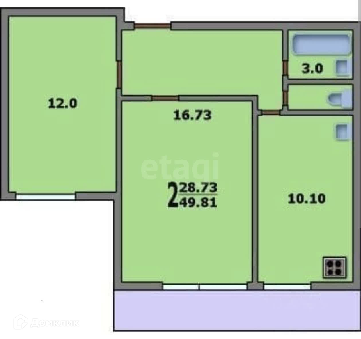 Общая площадь 50.3 м2