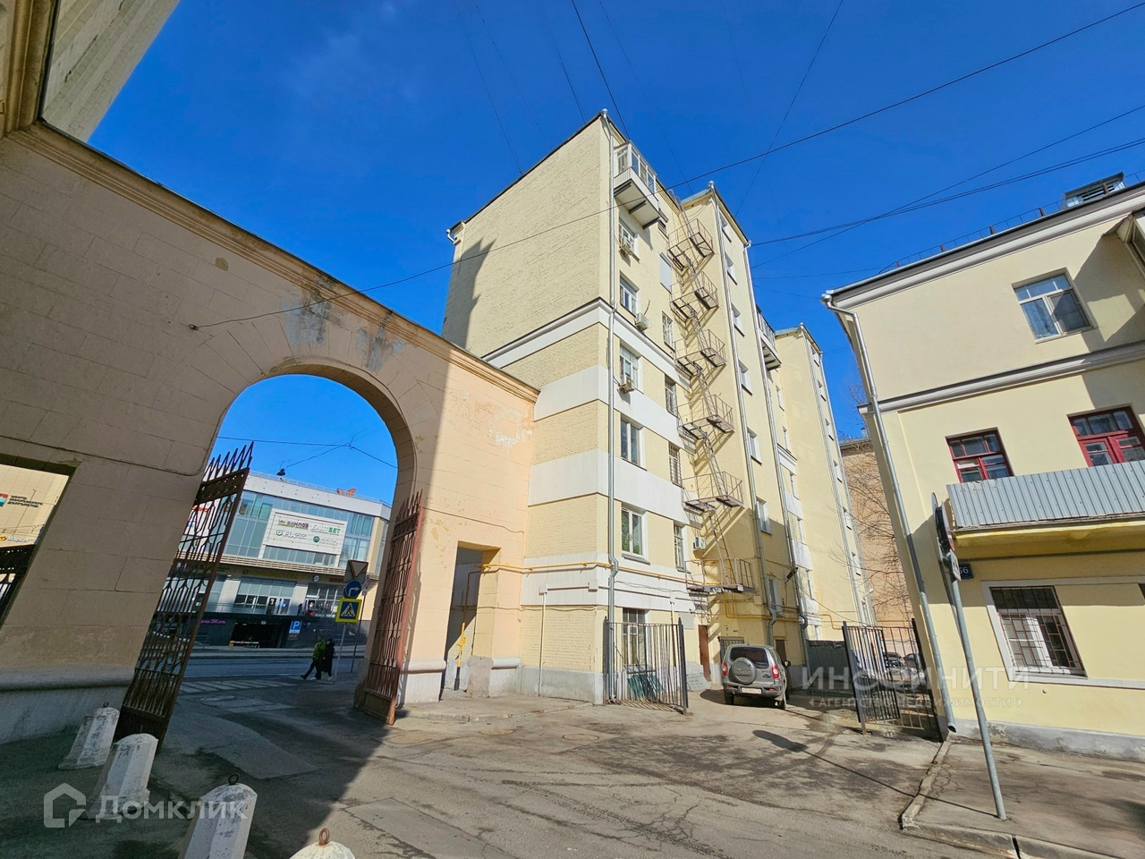 Во дворе парковка под шлагбаум. Удобные и быстрые выезды на основные магистрали города. Метро в паре минут пешком.