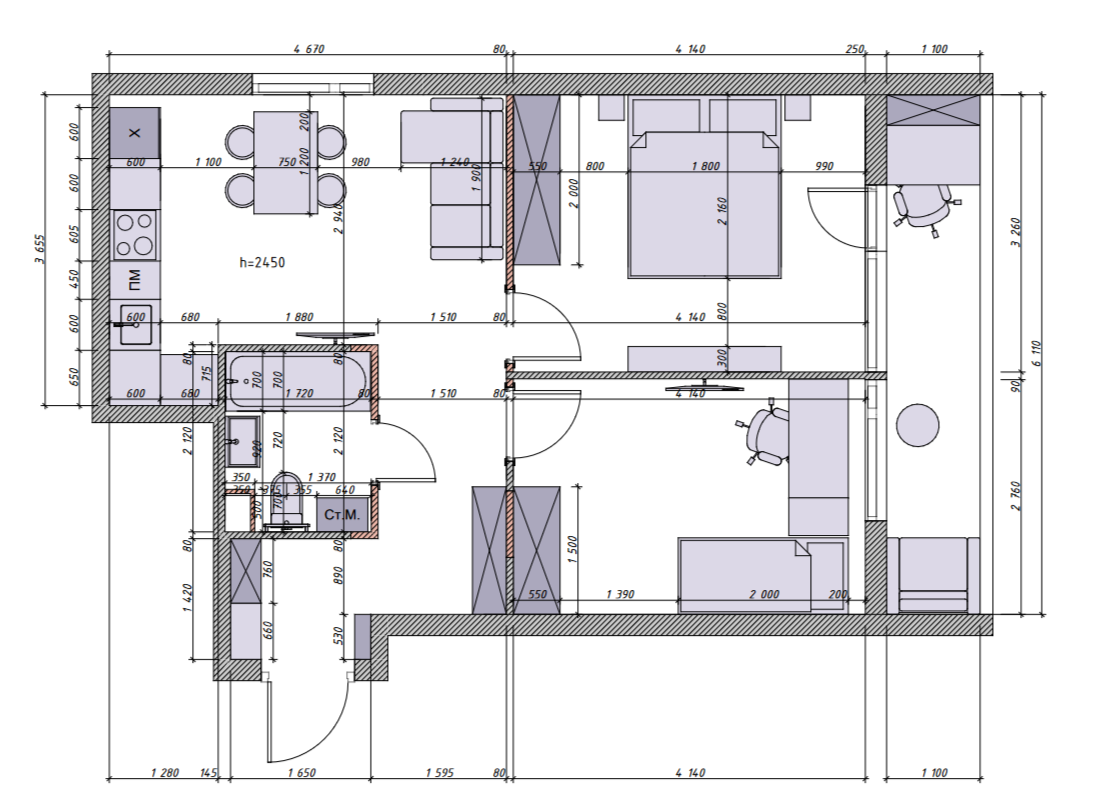 Общая площадь 56 м2