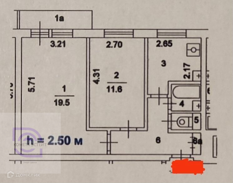 Балкон, лоджия 1 балкон