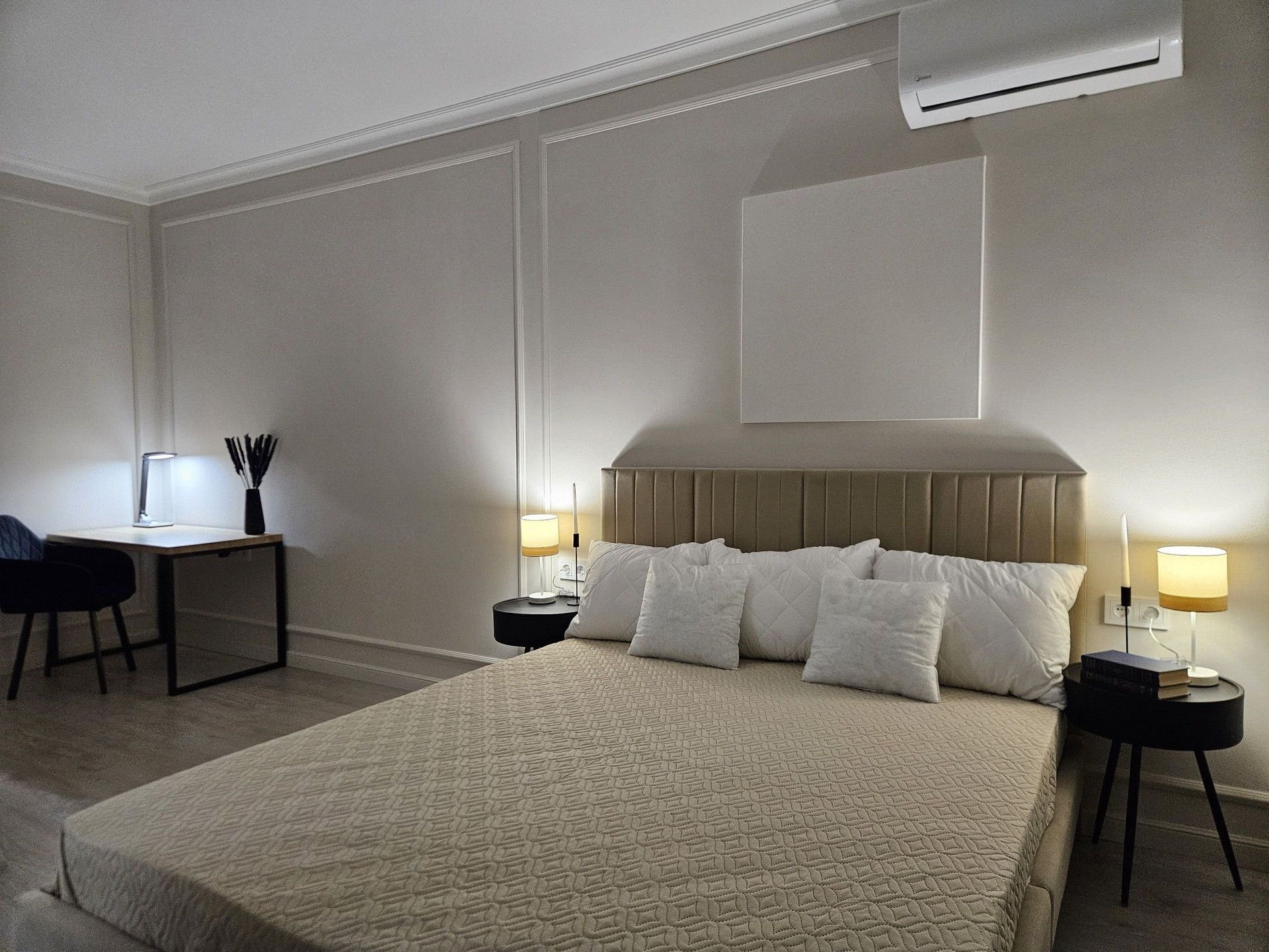По ремонту - стены выровнены под 0, под покраску, в зависимости от света меняют цвет. Потолки покраска. Ламинат 33 класс. Стяжка с изоляцией. Новая электрика, медные провода. Сантехника -  защита от гидроударов, редуктора, проточный водонагреватель встроен в систему водоснабжения. 4к телевизор. Кондиционер Midea. Кухня полная встройка, вся техника Ginzzu, есть измельчитель отходов и фильтр воды. Вся мебель на доводчиках. Стеклопакеты 2 камеры. Wifi мгтс проведен и подключен. Быстрый выход на сделку. Аргументированный торг.