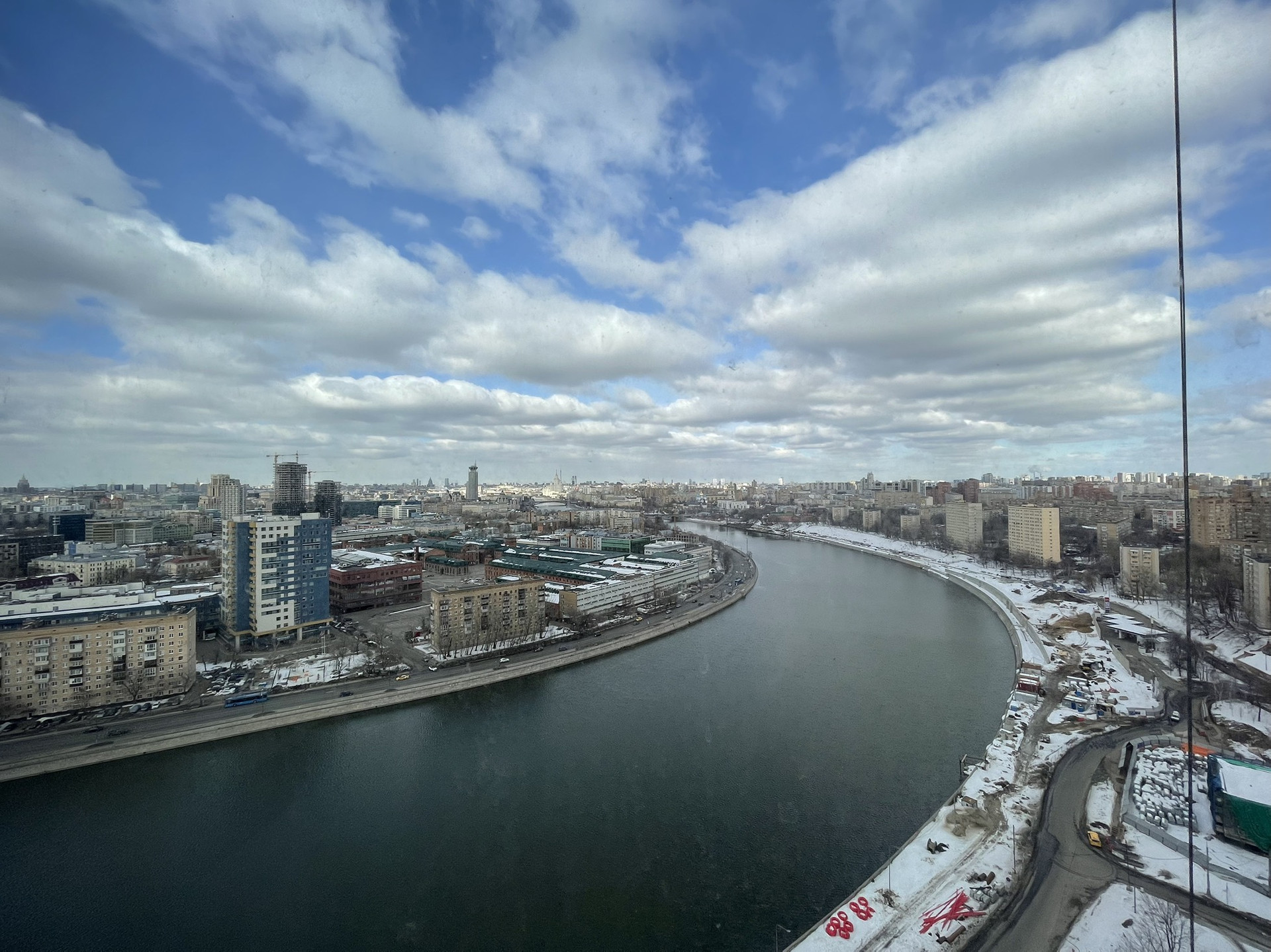 Квартира с уникальными видовыми характеристиками расположена на 23м этаже корпуса №5. Шикарный вид на реку, высотку на Котельнической набережной, Moscow City – практически весь город виден из окон вашей квартиры.
