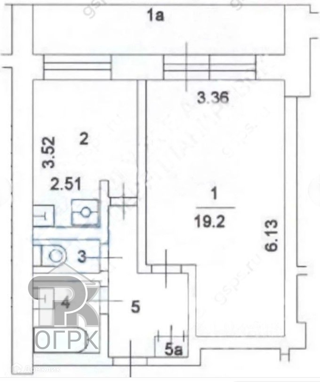 Общая площадь 33.6 м2