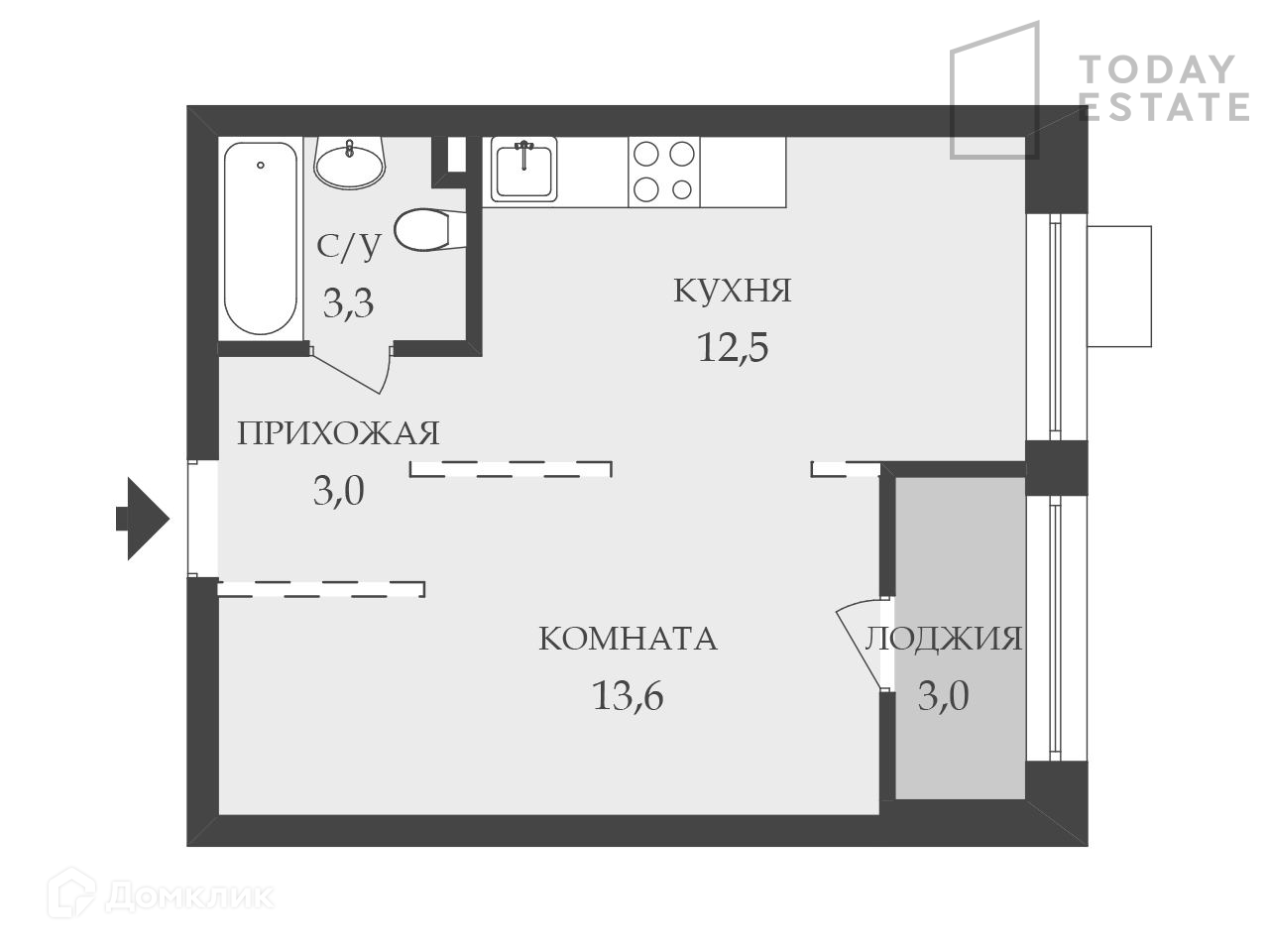 Общая площадь 33.2 м2