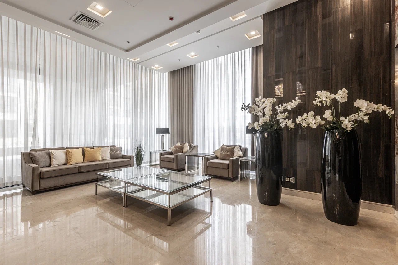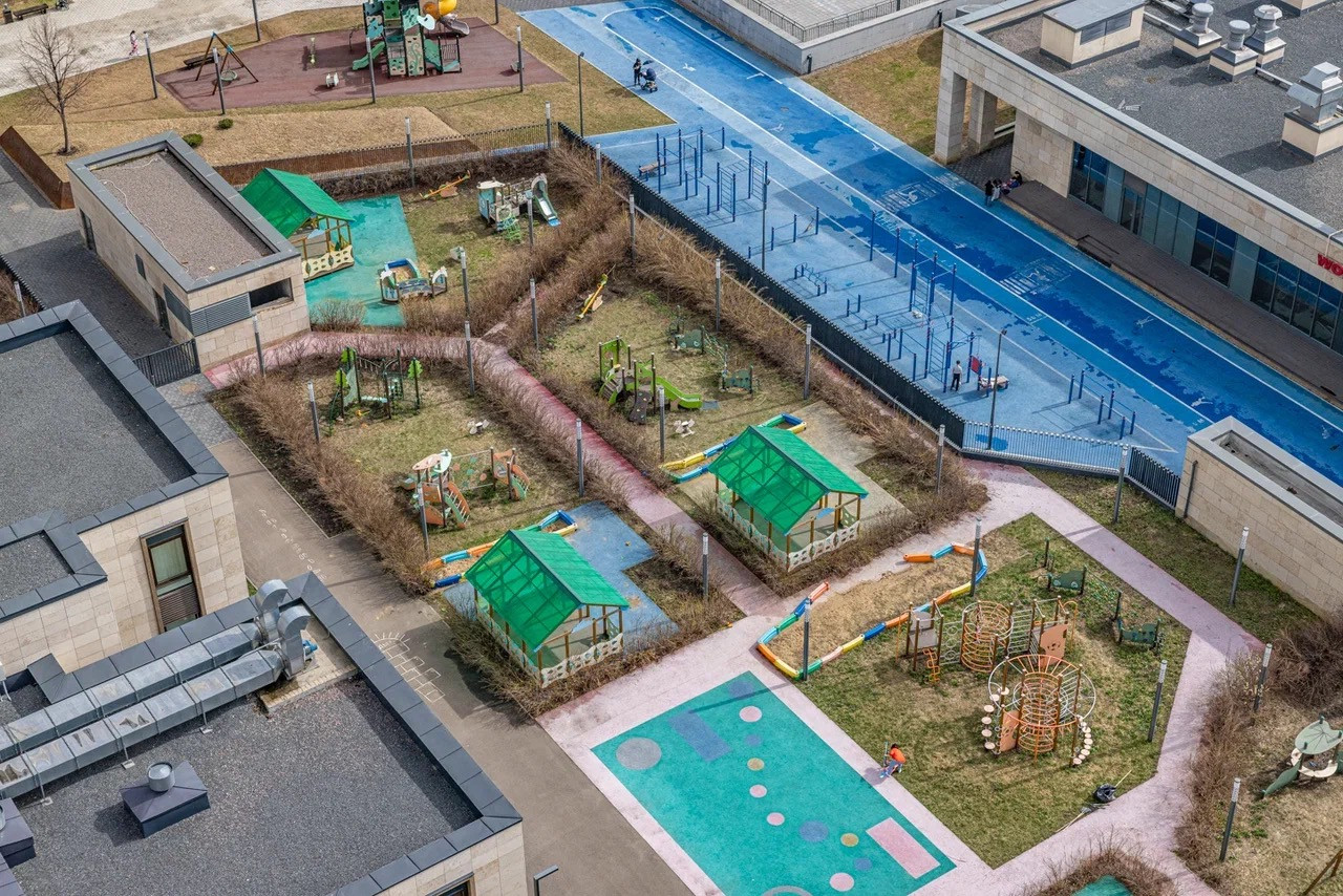 ЖК с круглосуточной охраной и службой консьерж сервиса, роскошной входной группой с стильным дизайном,  подземным паркингом с мойкой , большой зеленой территорией с ландшафтным дизайном с детскими и спортивными площадками, спортклубом с бассейном (Ворд класс), детским садом, магазином  Азбука Вкуса, современными кафе и ресторанами, химчистками и прочими удобными опционами.