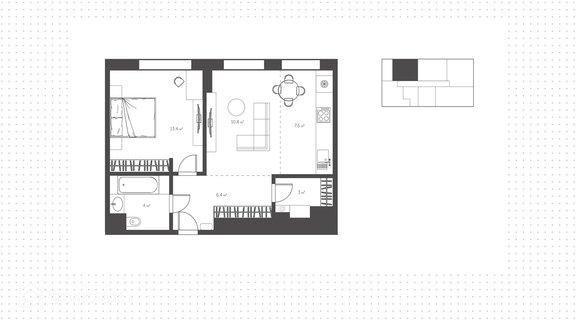 Общая площадь 45.2 м2
