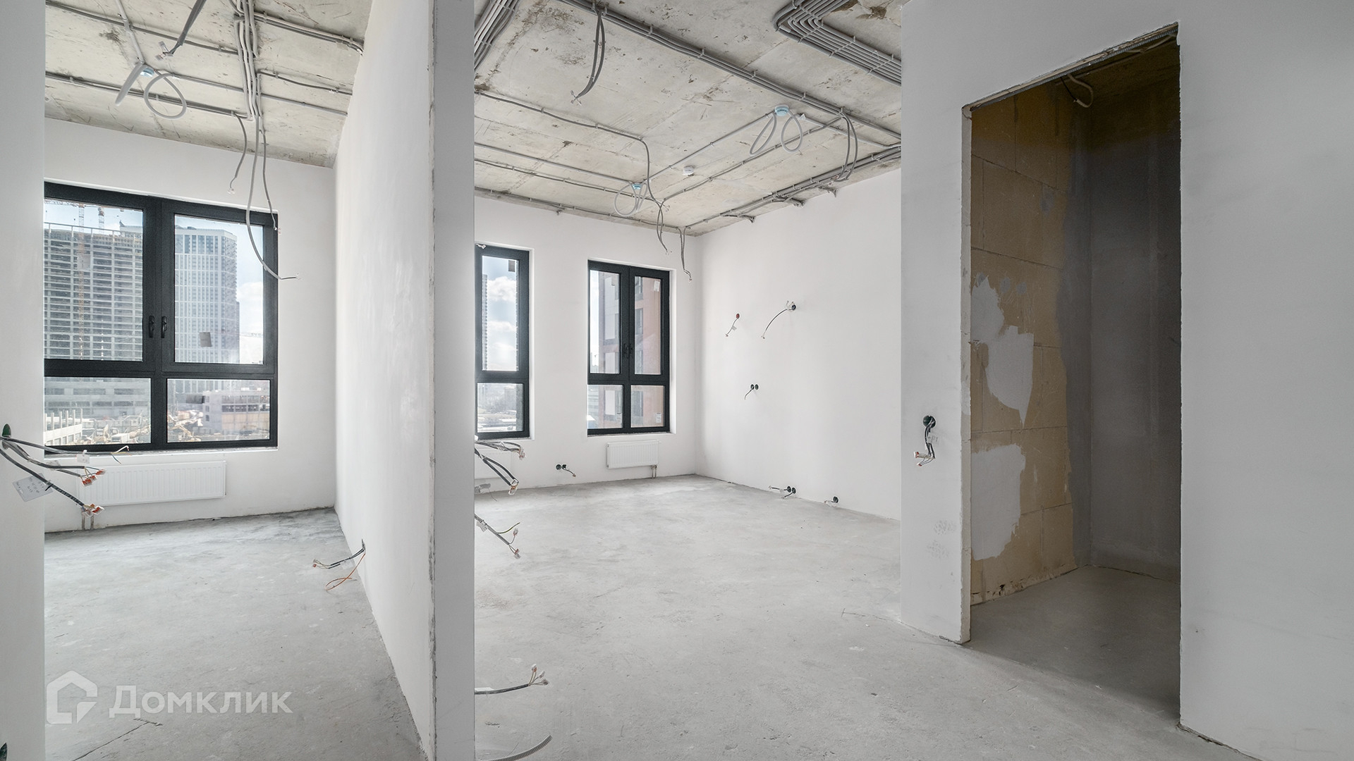 ID 253 546. Светлая квартира с 1-й спальней площадью 45 м² в комплексе Sydney City на набережной Москвы-реки. Квартира с предчистовой отделкой whitebox расположена на 8-м этаже. Планировка: кухня-гостиная, спальня, санузел, постирочная или гардеробная, прихожая. Из окон открывается вид во внутренний двор.