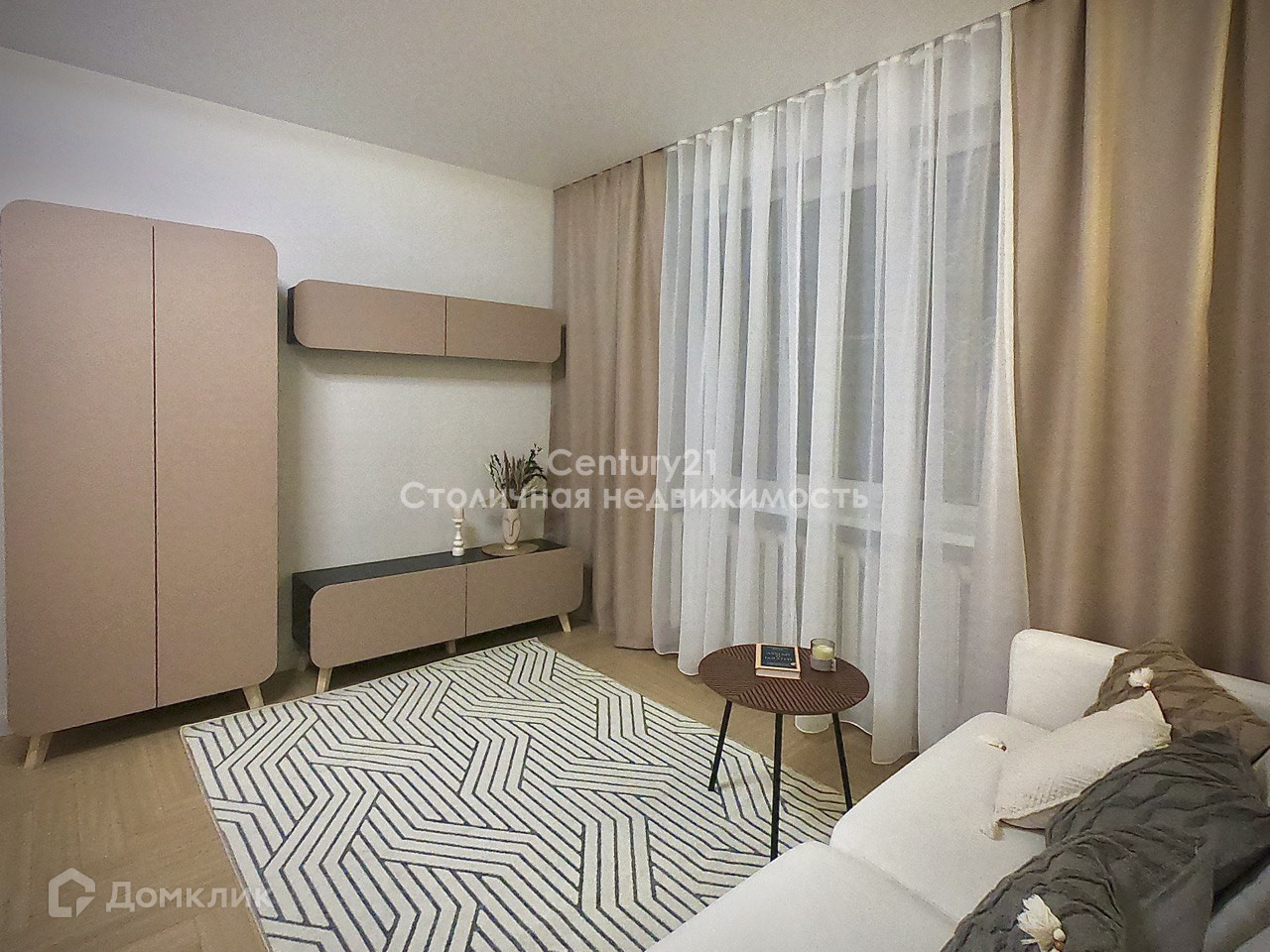 Комната Спальня-гостиная 19 кв.м: кровать с подъемным механизмом, 2 подвесные прикроватные тумбочки, диван для отдыха, журнальный столик, вместительный Шкаф, тумба под TV.