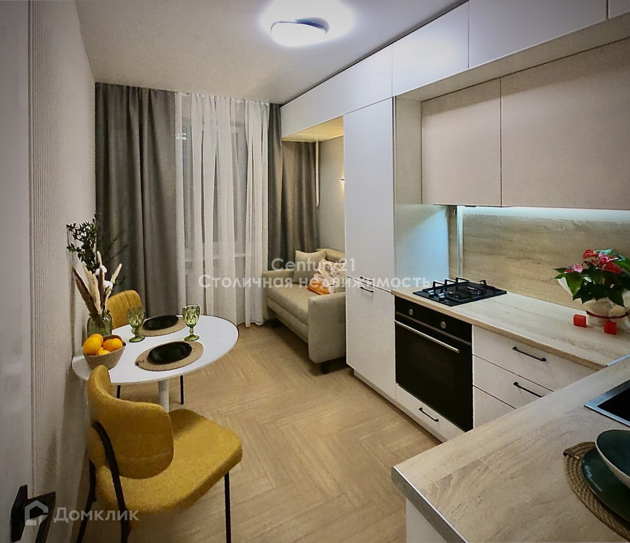 Квартира с оптимальной планировкой: 1 изолированная комната и полноценная кухня-гостиная.