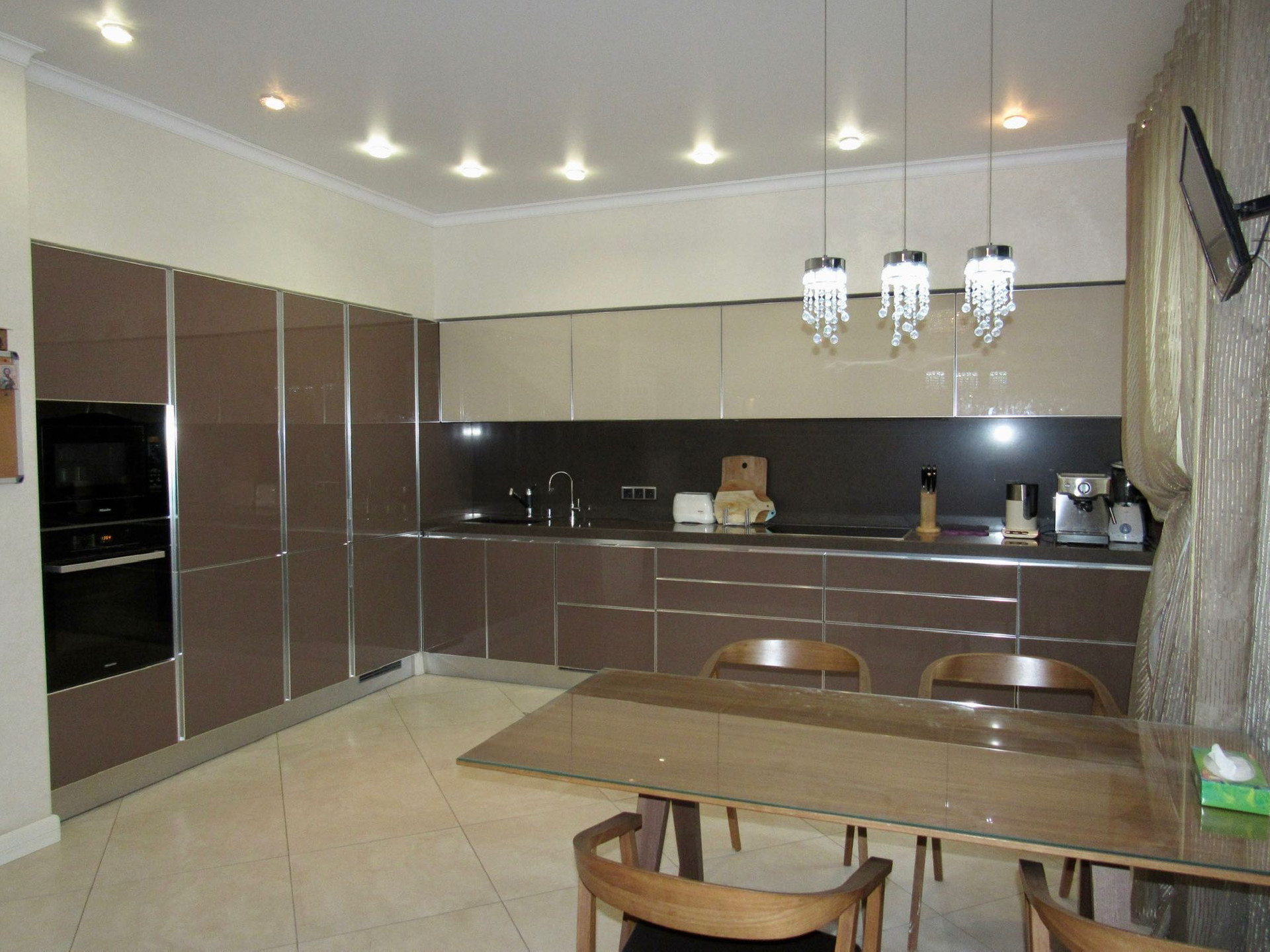 Ремонт выполнен из высококачественных материалов. Кухня с встроенной техникой Miele, плитка Versace. Квартира полностью меблирована.