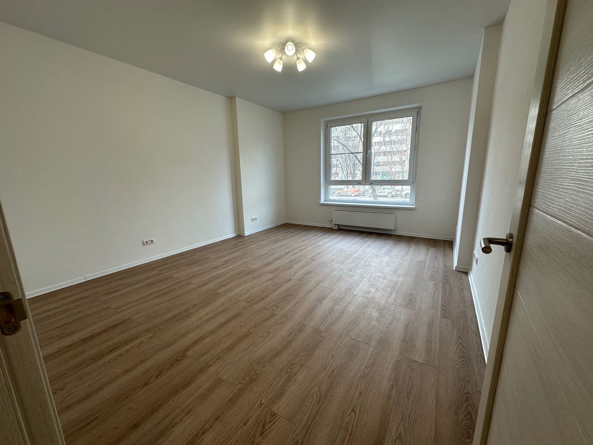 Комфортный высокий 2 этаж, окна на улицу (западная сторона, солнце после 15:00). Ремонт от застройщика - двойные стеклопакеты, натяжные потолки, обои под покраску окрашены белой краской, радиаторы, вся сантехника, плита электрическая, раковина на кухне, домофон.
