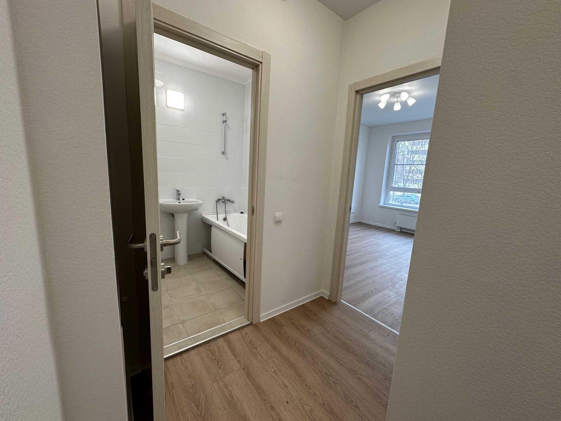 2х-комнатная квартира с лоджией и 2 санузлами. 3 совершеннолетних собственника. Никто не прописан и в квартиру не въезжал. Дом сдан в конце 2023 года, ещё в процессе заселения.