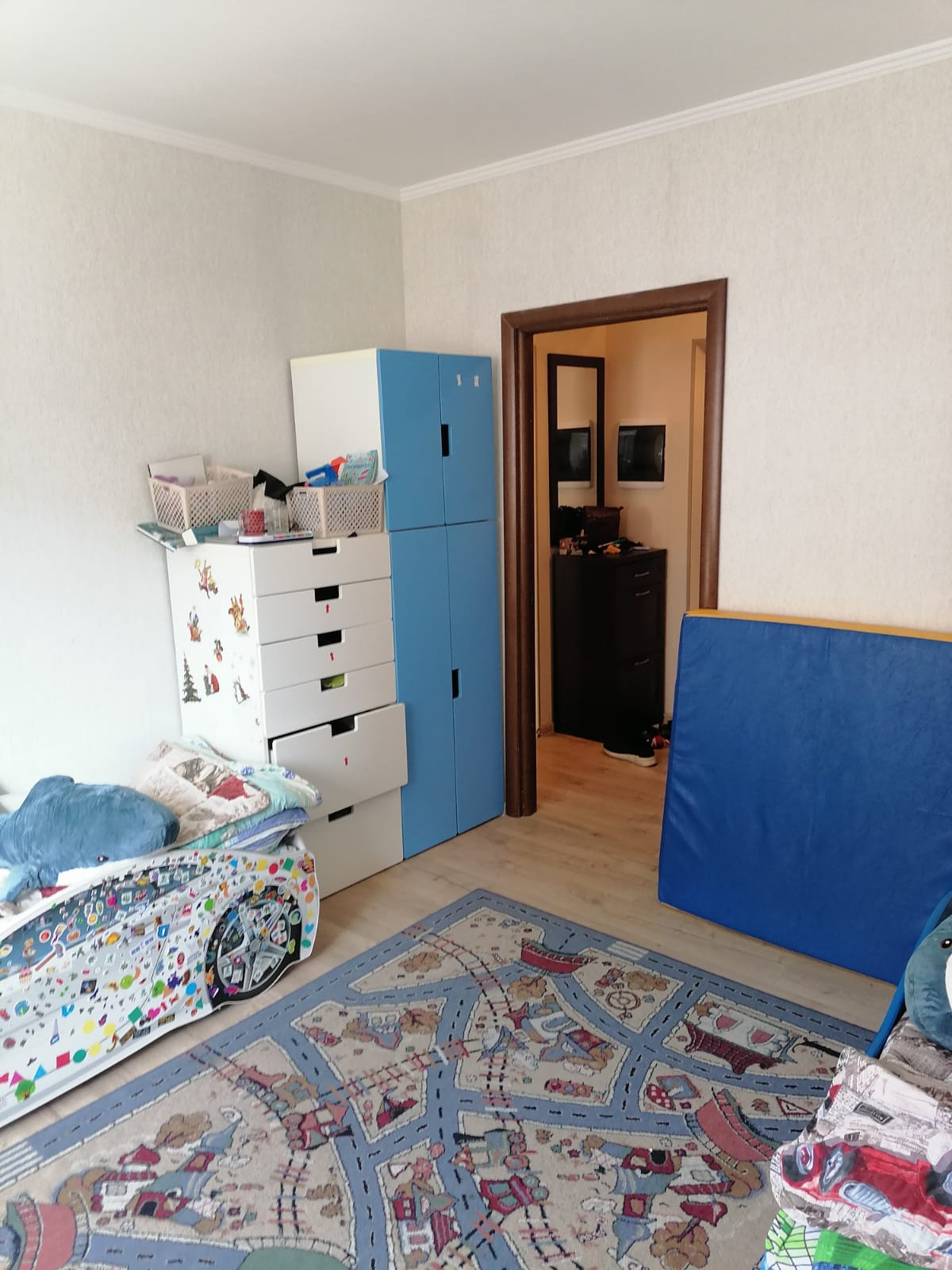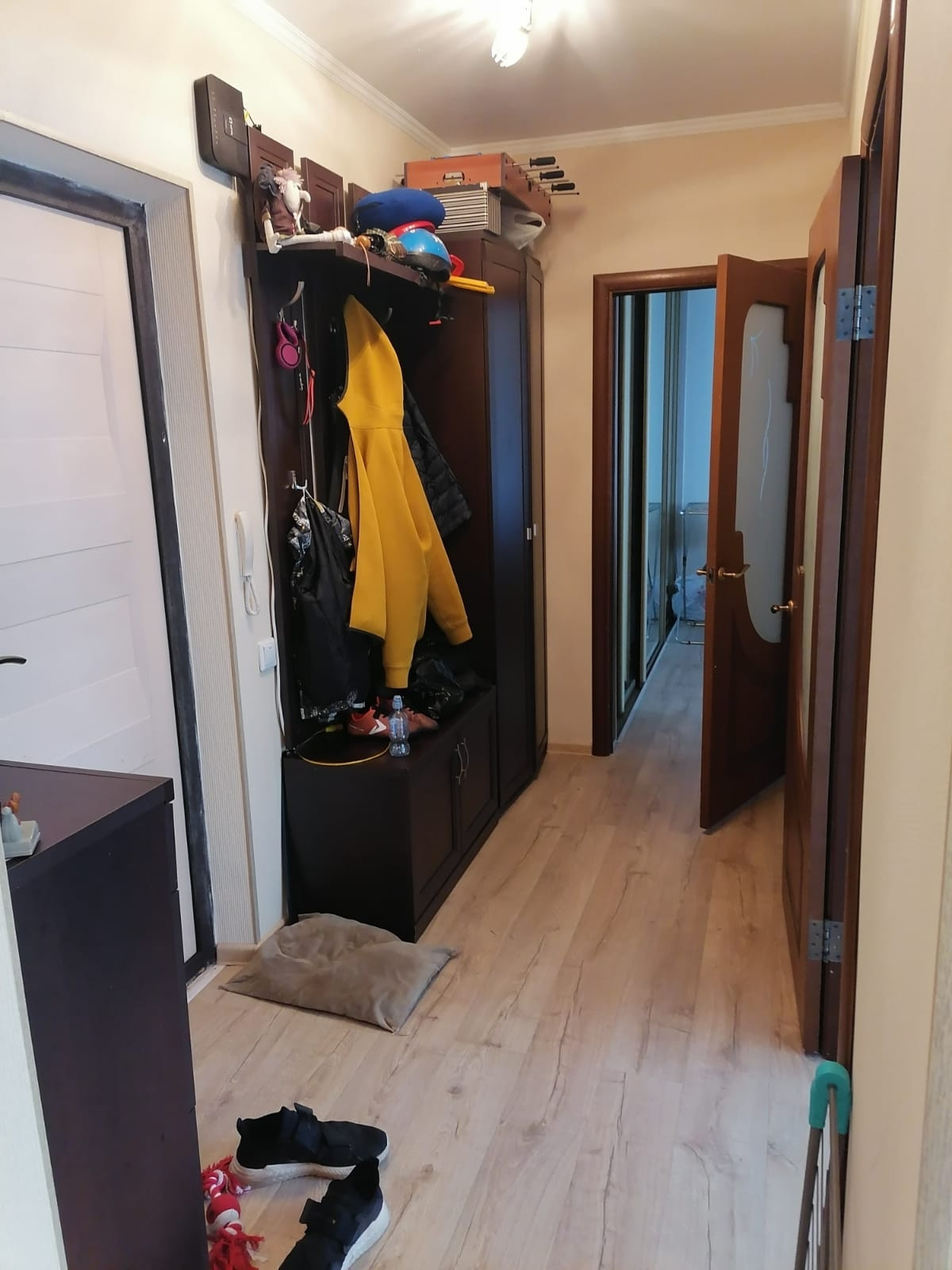 Сделан капитальный ремонт: замена труб,батарей, электрики, новые счетчики. Выровнены потолки и стены. Требуется только переклеить обои.