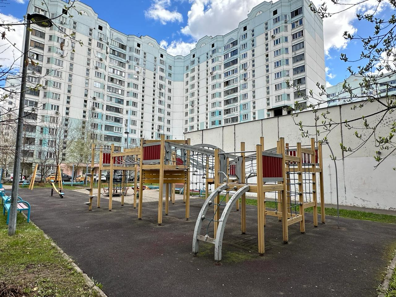 - Зелёный район, рядом благоустроенный парк с прогулочными дорожками, спортивными площадками, прудом.