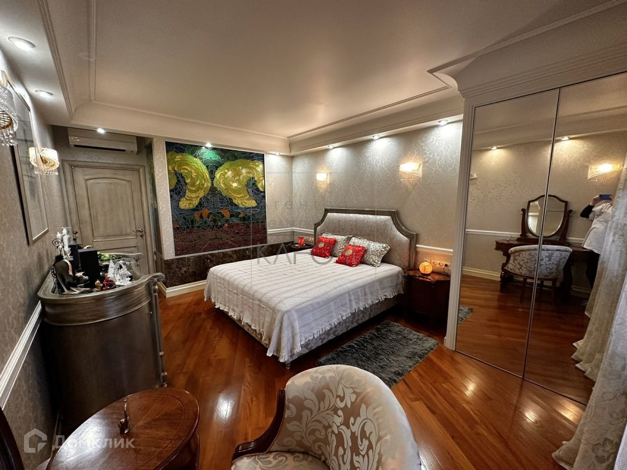 Id 10991. Продается 5-ком. квартира. В квартире выполнен дизайнерский евроремонт. Вид из окон на две стороны. Просторная кухня-гостиная. Встроенная кухня с бытовой техникой. Два санузла. Покрытие пола –  паркет и плитка. Застекленная лоджия. Гардеробная. Установлен кондиционер. Квартира продается с мебелью и бытовой техникой.