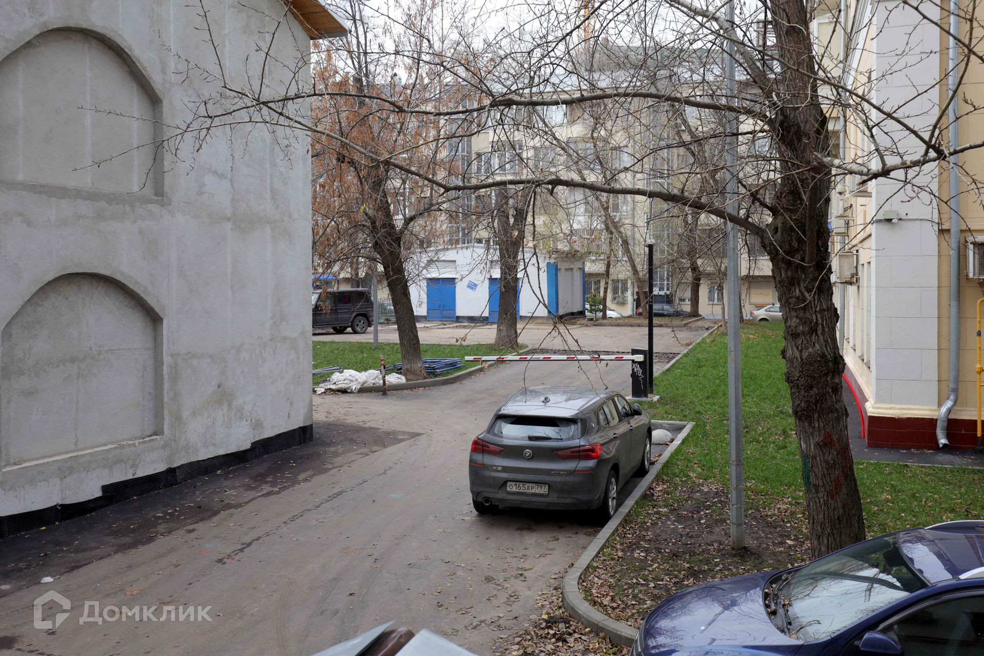 Все окна выходят во внутренний двор. Парковка во дворе под шлагбаумом.