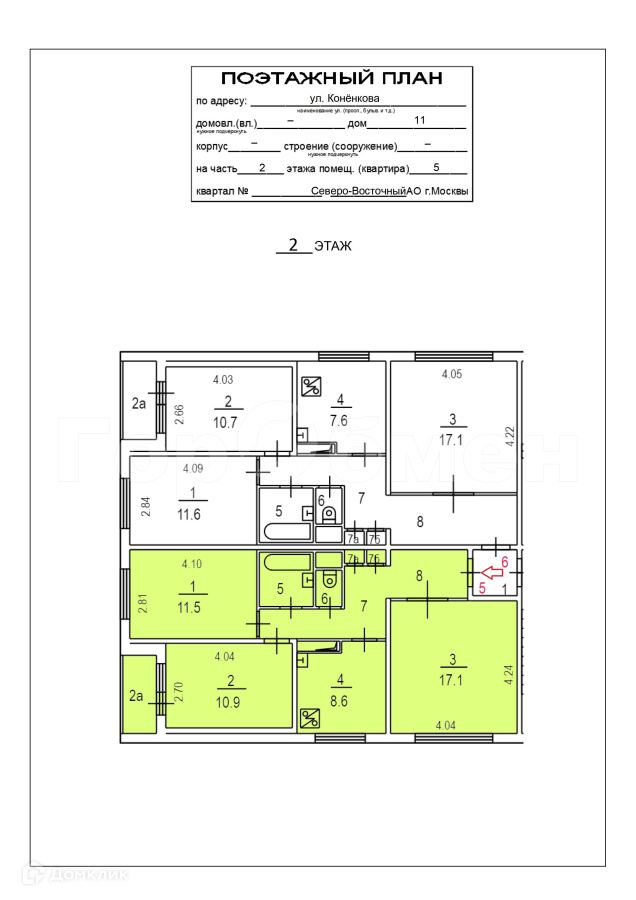 3-комнатная квартира, 61.1 м2, этаж 2 / 12, на продажу в Москве, улица Конёнкова, 11
