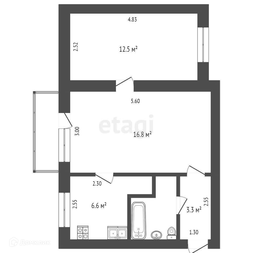 Балкон, лоджия 1 балкон