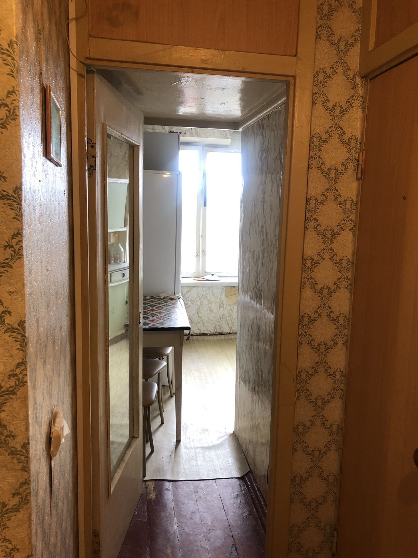 Квартира под ремонт, общей площадью 35 кв.м, площадь комнат 14 кв.м и 8,5 кв. м, кухня 5 кв.м, совмещённый санузел, окна выходят во двор.