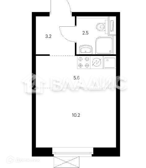 Общая площадь 21.2 м2