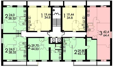Жилая площадь 42.9 м2