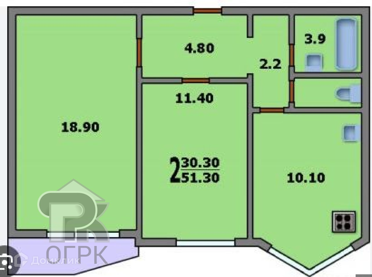 Жилая площадь 30.3 м2