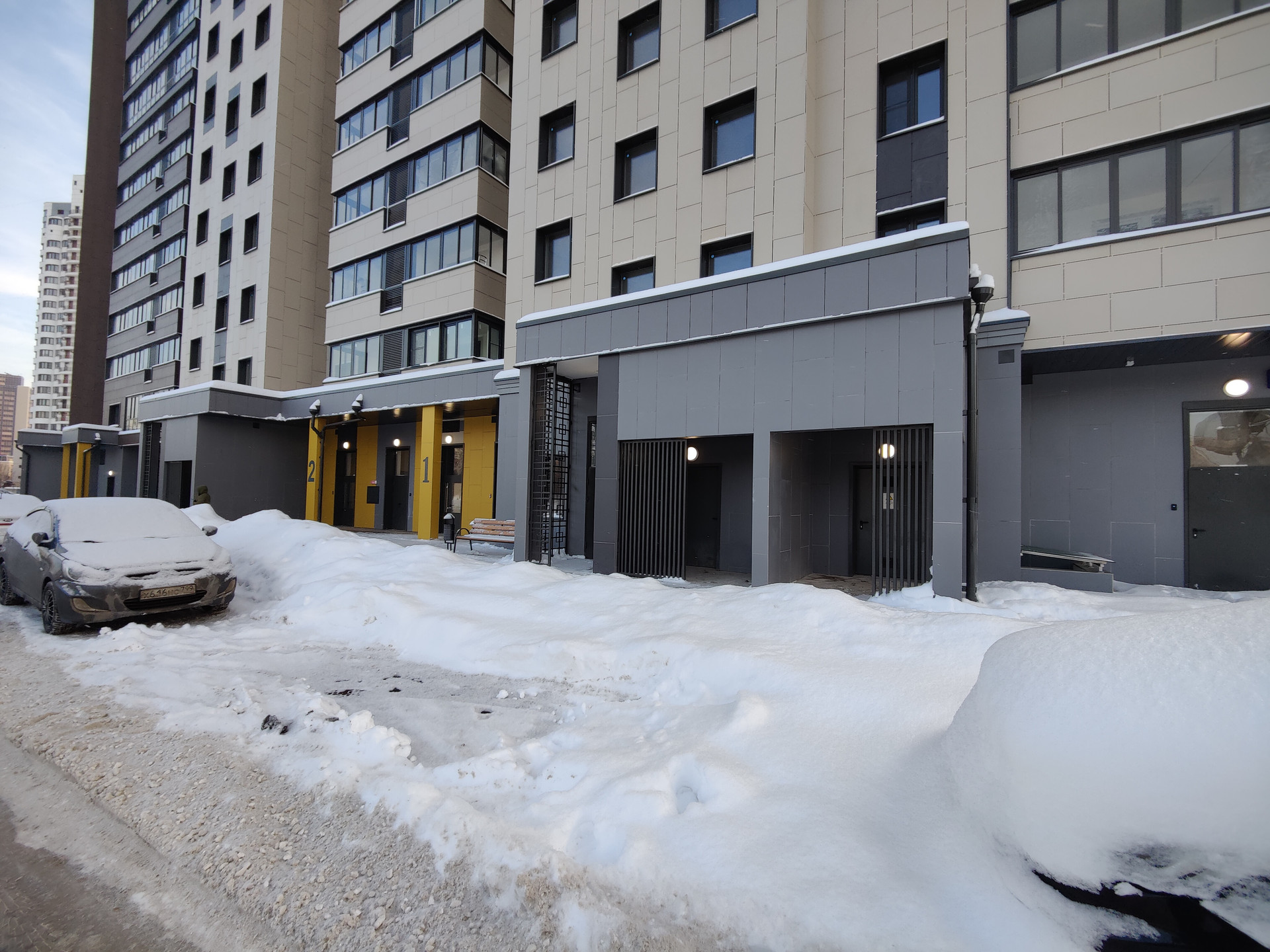 Подъезды сквозные с колясочными и помещениями для консъержа. Лифт, домофон, витражное остекление.