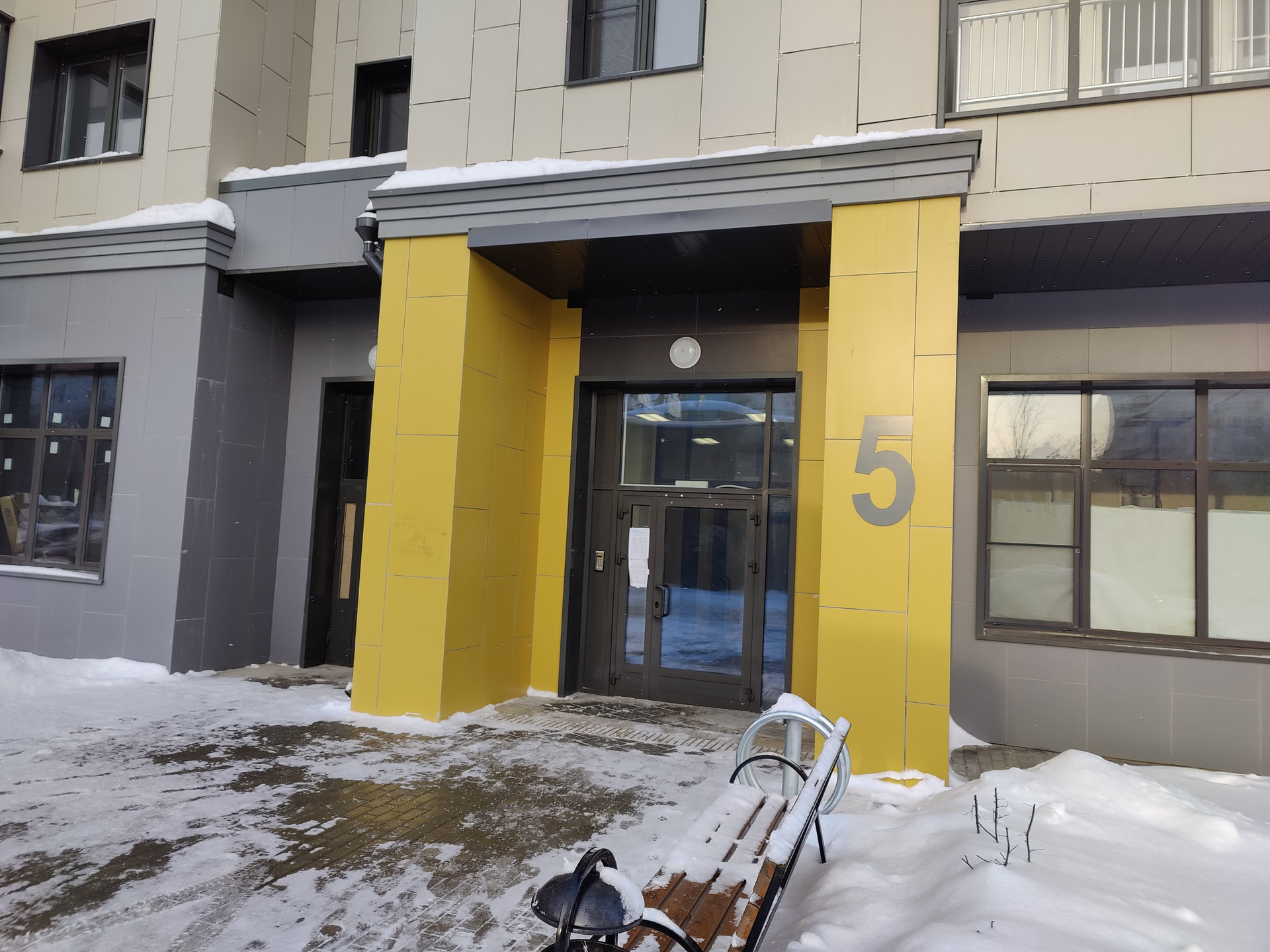 Весь первый этаж -нежилой, под коммерческие помещения.