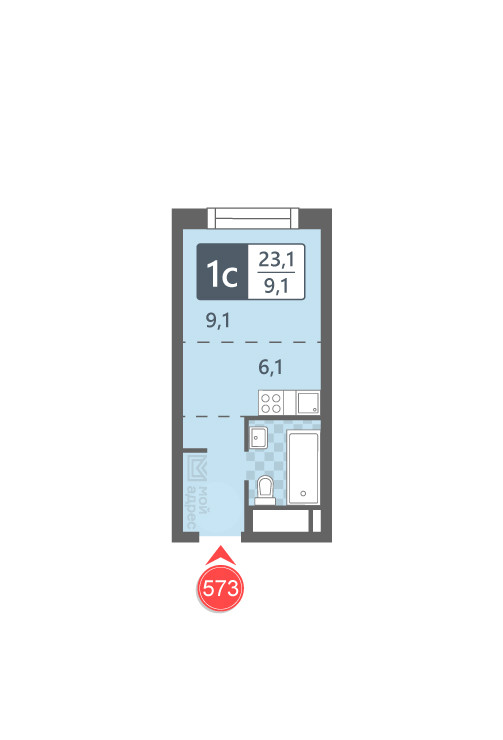 Общая площадь 23.1 м2