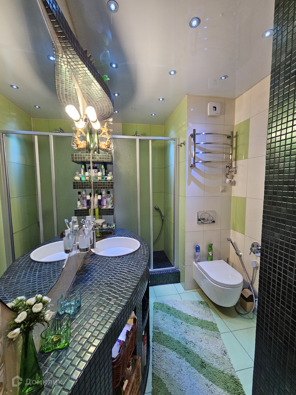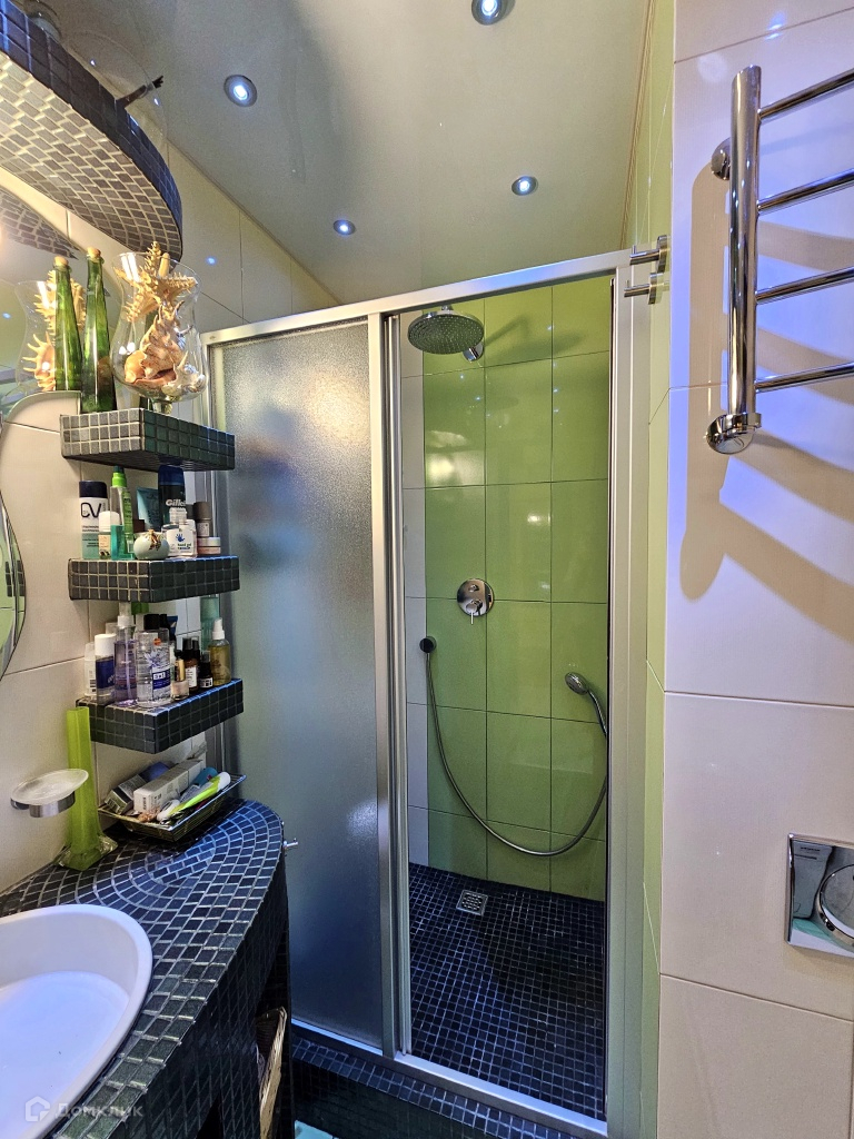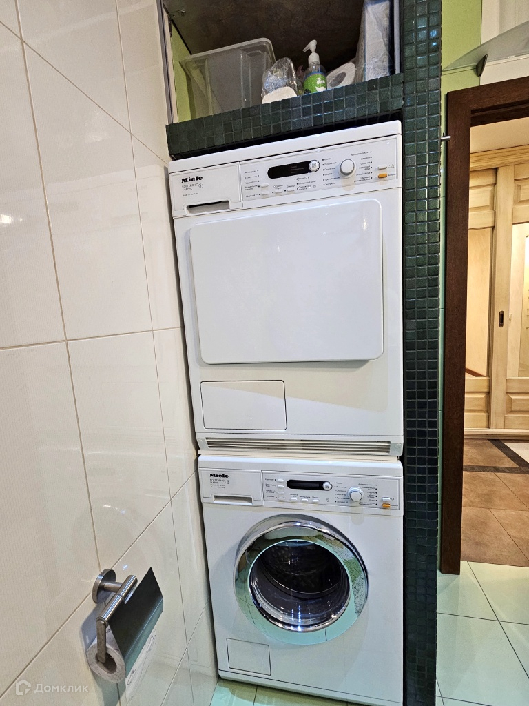В ванной комнате установлены душевая кабина, стиральная и сушильная машины Miele.