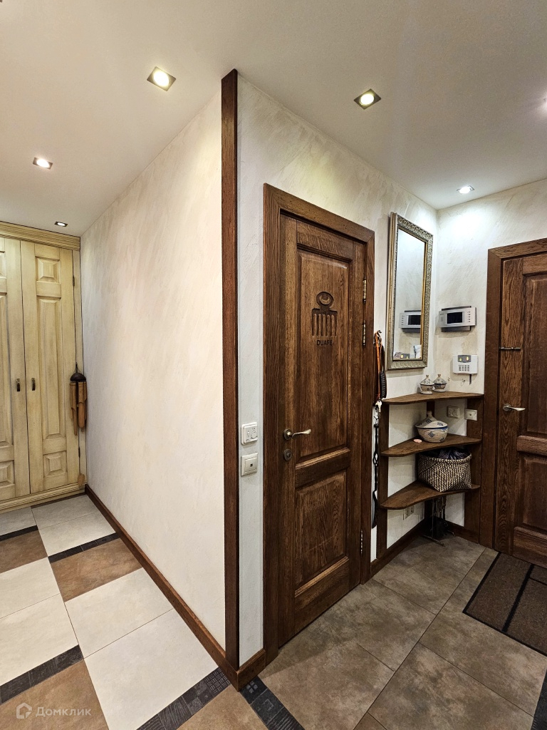 При ремонте использовались дорогие и экологичные отделочные материалы. Мебель и двери произведены по индивидуальному заказу из натурального дуба и липы. Пол в комнатах выполнен из красивого и самого прочного «железного» дерева – лапачо,