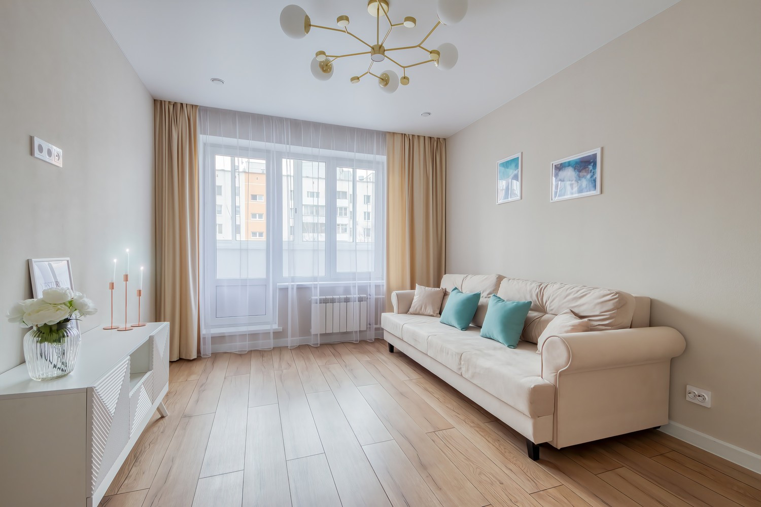 - вторая комната в бежевых нейтральных тонах может быть трансформирована в детскую, гостиную, кабинет или комнату по вашему назначению, а раскладной диван обеспечит полноценное спальное место.