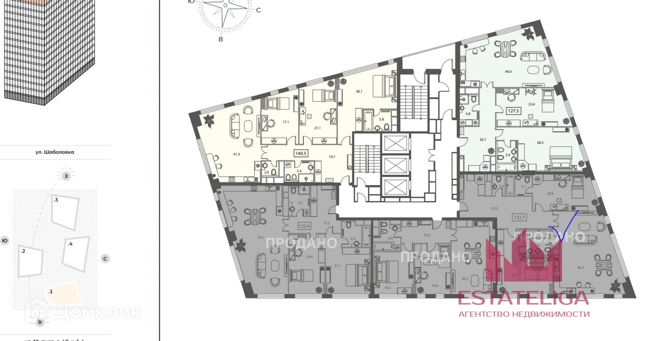 3-комнатная квартира, 132.7 м2, этаж 15 / 22, на продажу в Москве, Мытная улица, 40к1