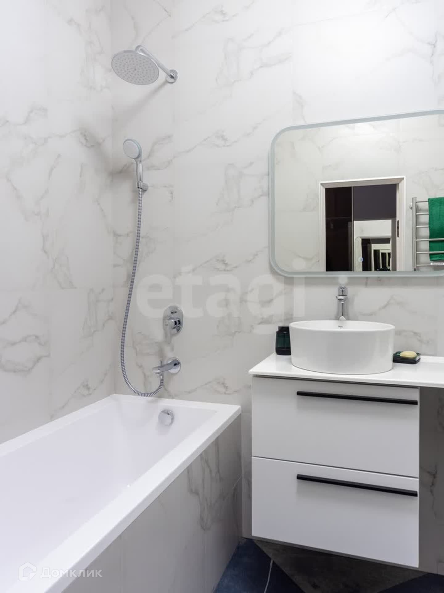 В ремонте использовались дорогие европейские отделочные материалы: ламинат - Германия, керамогранит - Испания. Ванна из искусственного камня, сантехника Grohe, Roca, инсталляция.