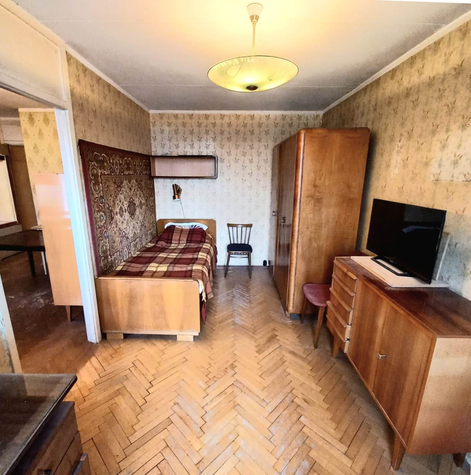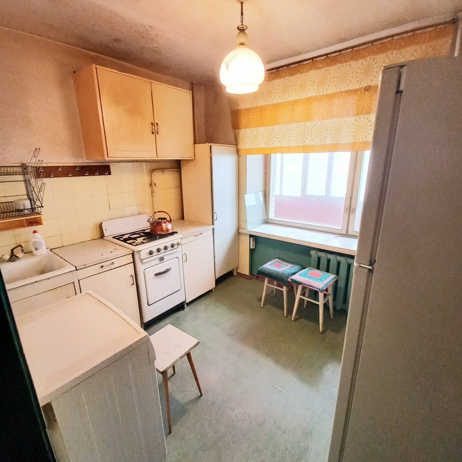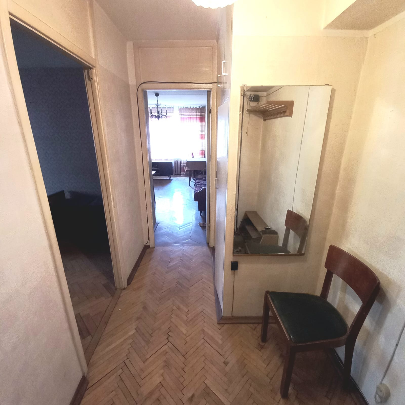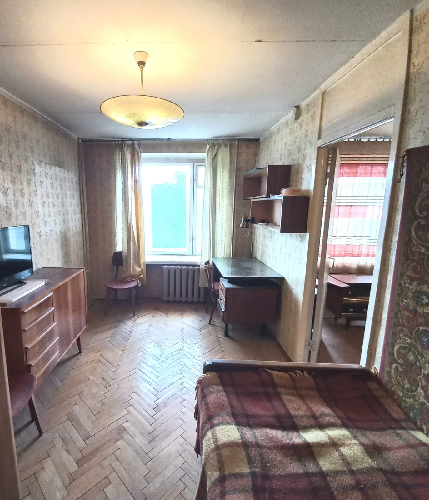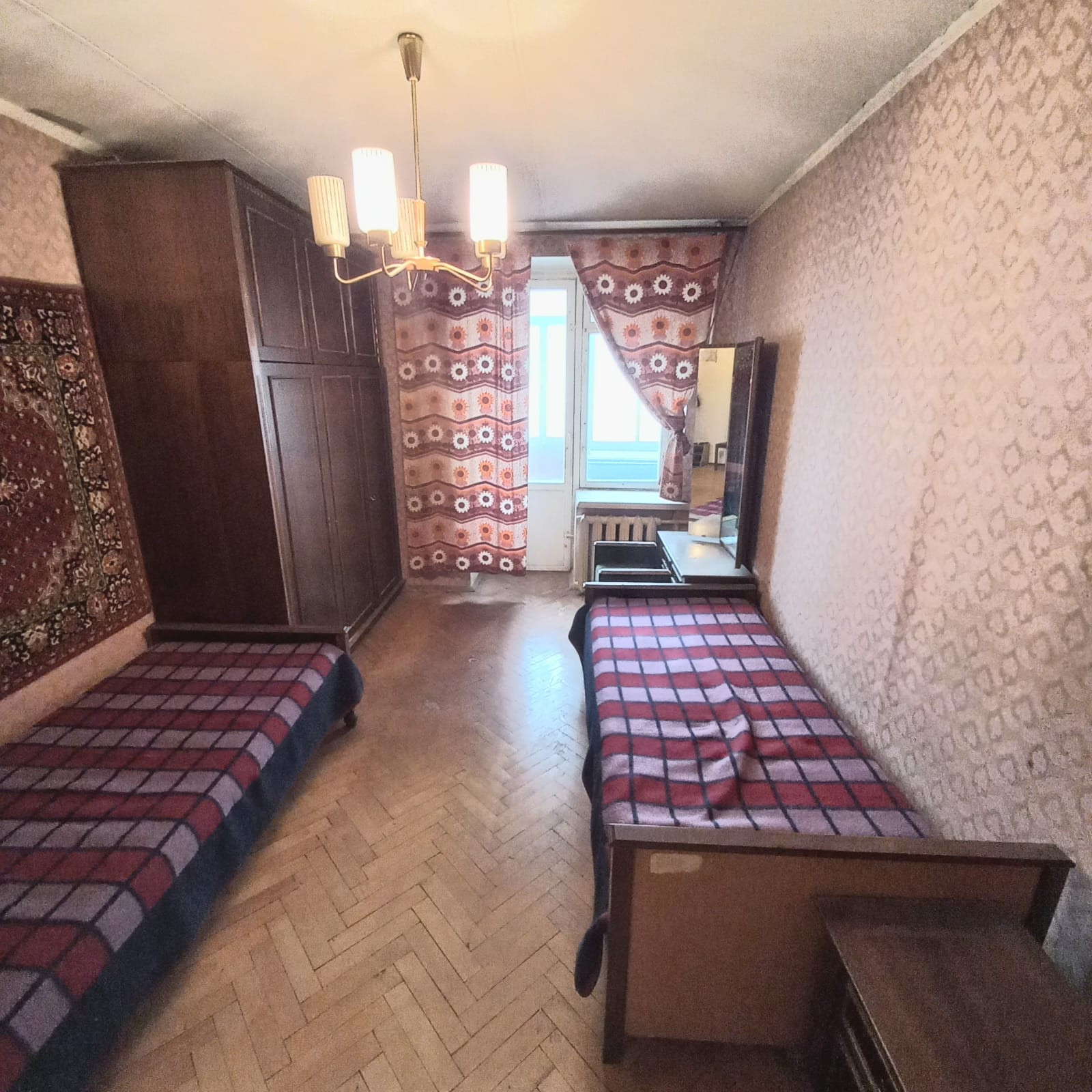 Квартира аккуратная, требует ремонта. Большая застекленная лоджия на комнату и кухню. Внутри квартиры нет несущих стен, что позволит при необходимости сделать перепланировку комнат.