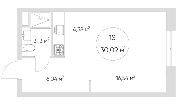 Общая площадь 30 м2