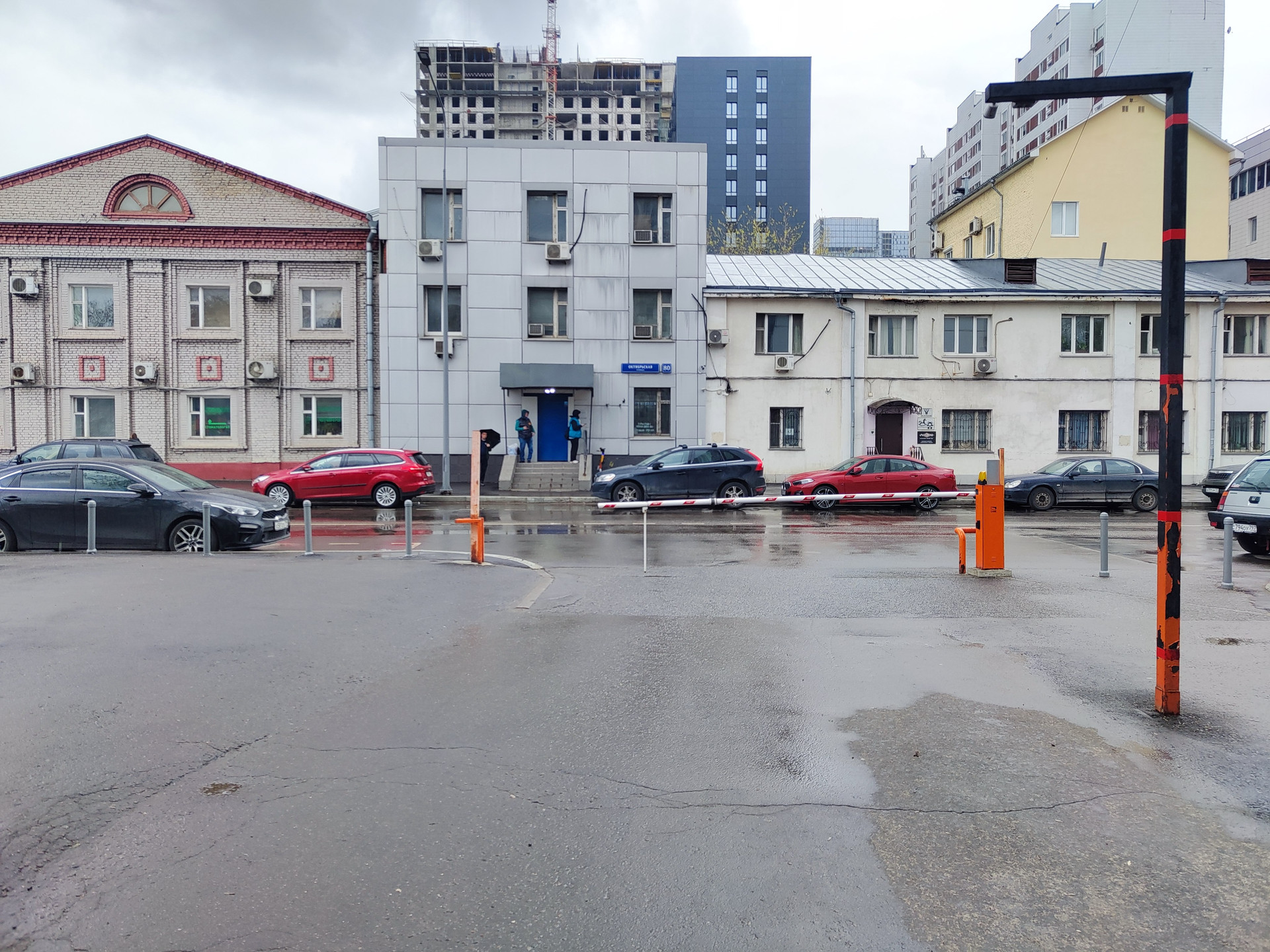 Тихий зеленый двор с детской площадкой и парковкой (оборудованной шлагбаумом).