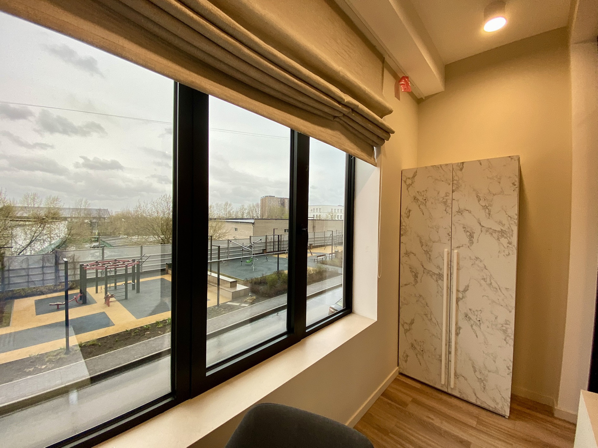 В квартире панорамные окна, открывается красивый вид на прилегающую территорию.