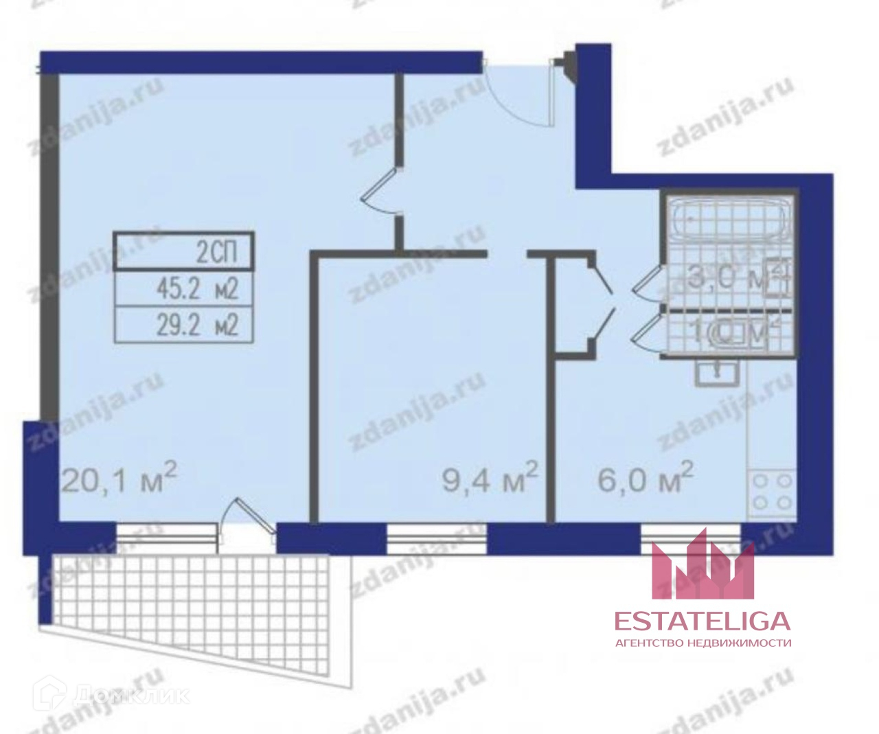 Балкон, лоджия 1 балкон