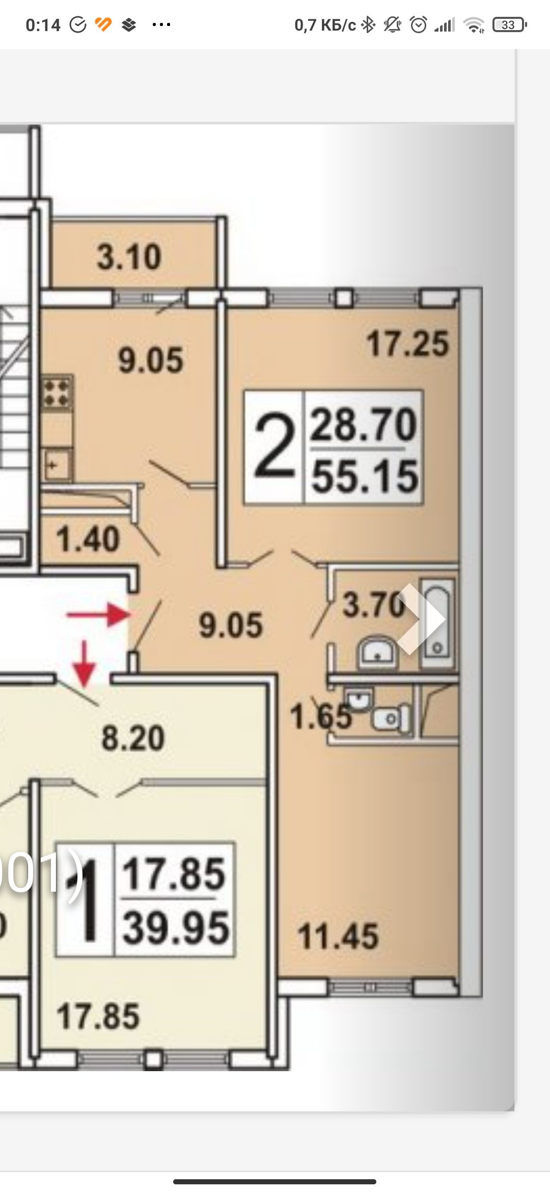 Общая площадь 55 м2