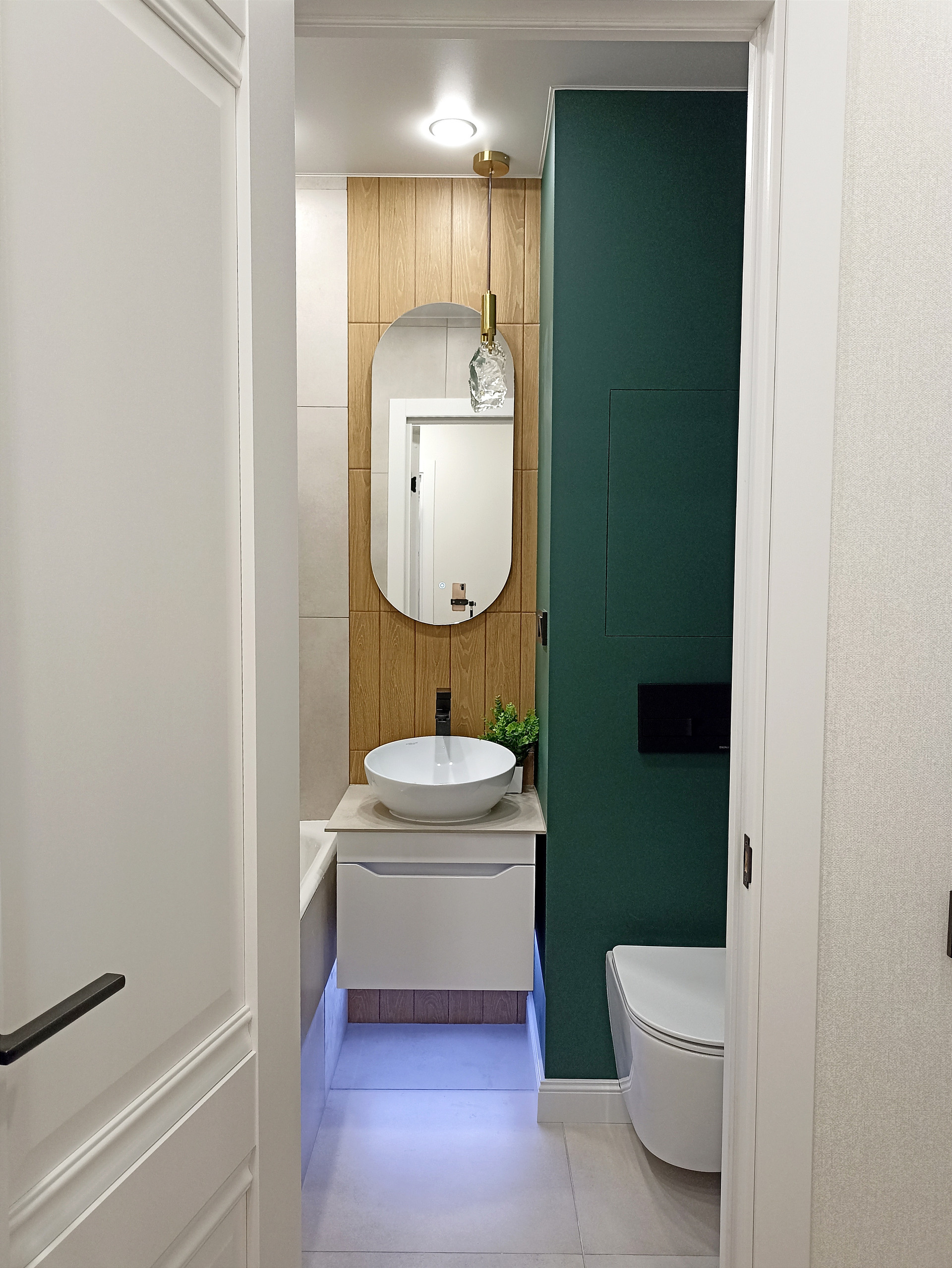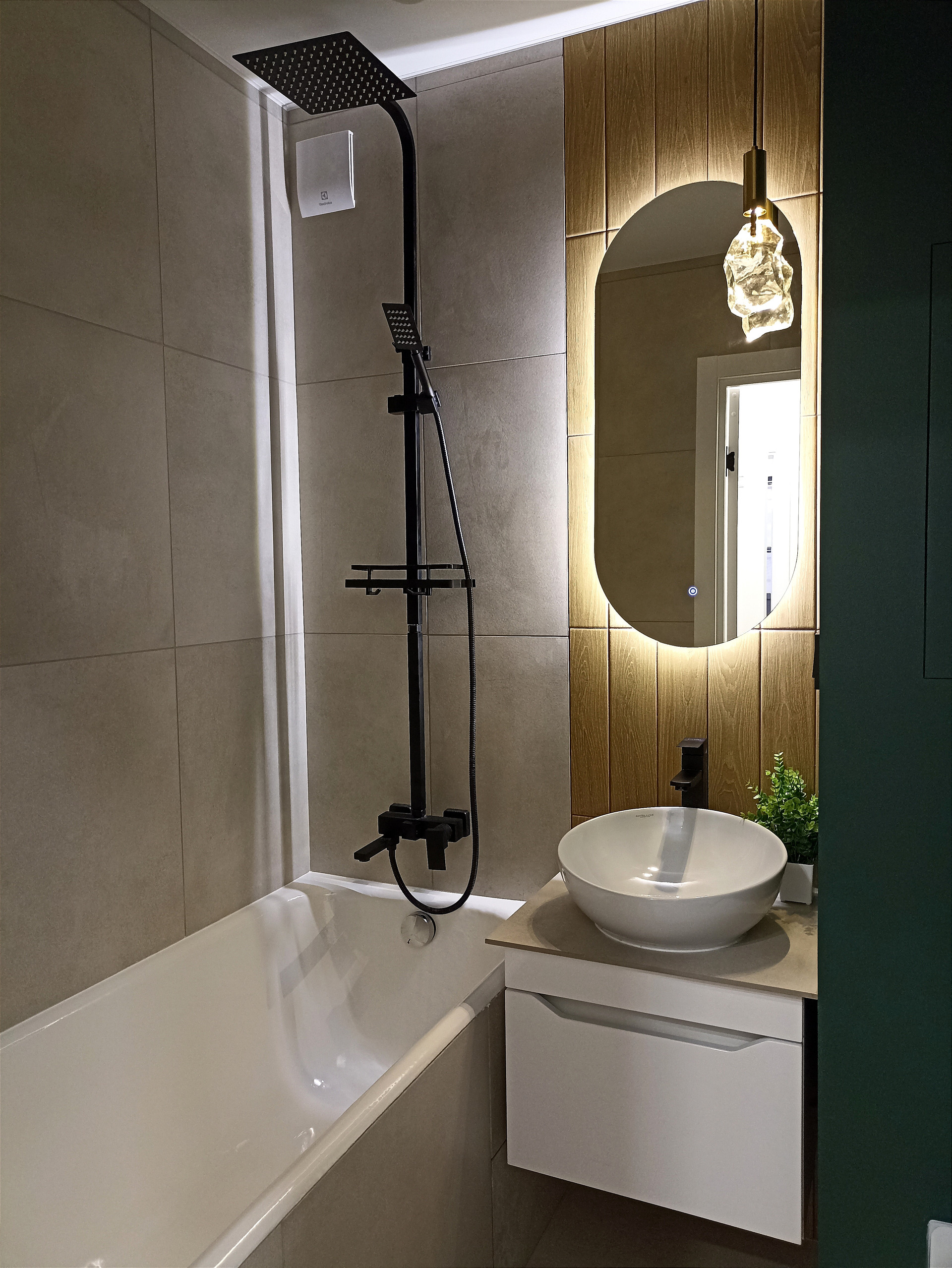 Совмещенный  санузел с полноценной ванной,  тропическим душем и ночной подсветкой (мягко светит в темноте не раздражая глаз)