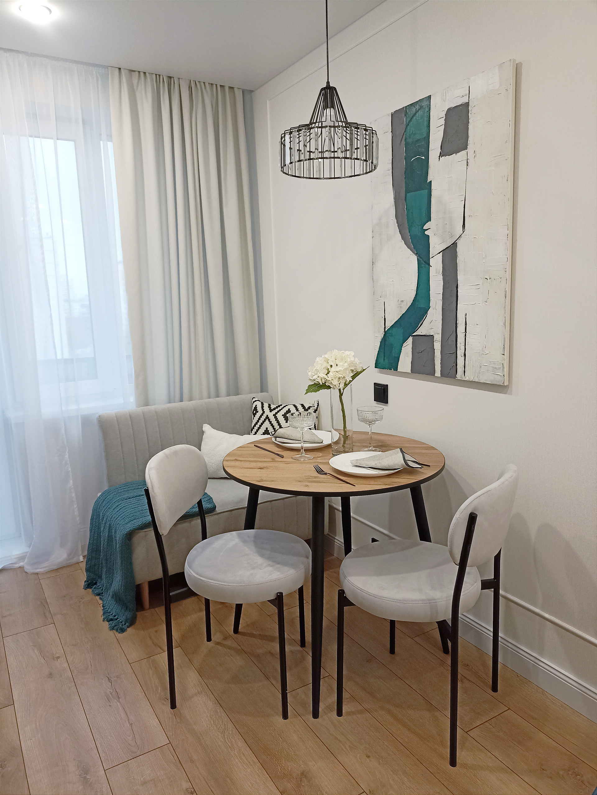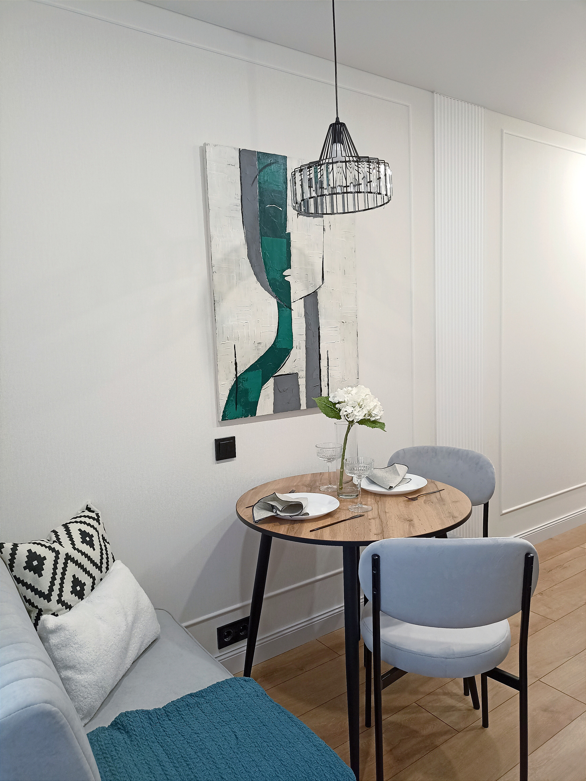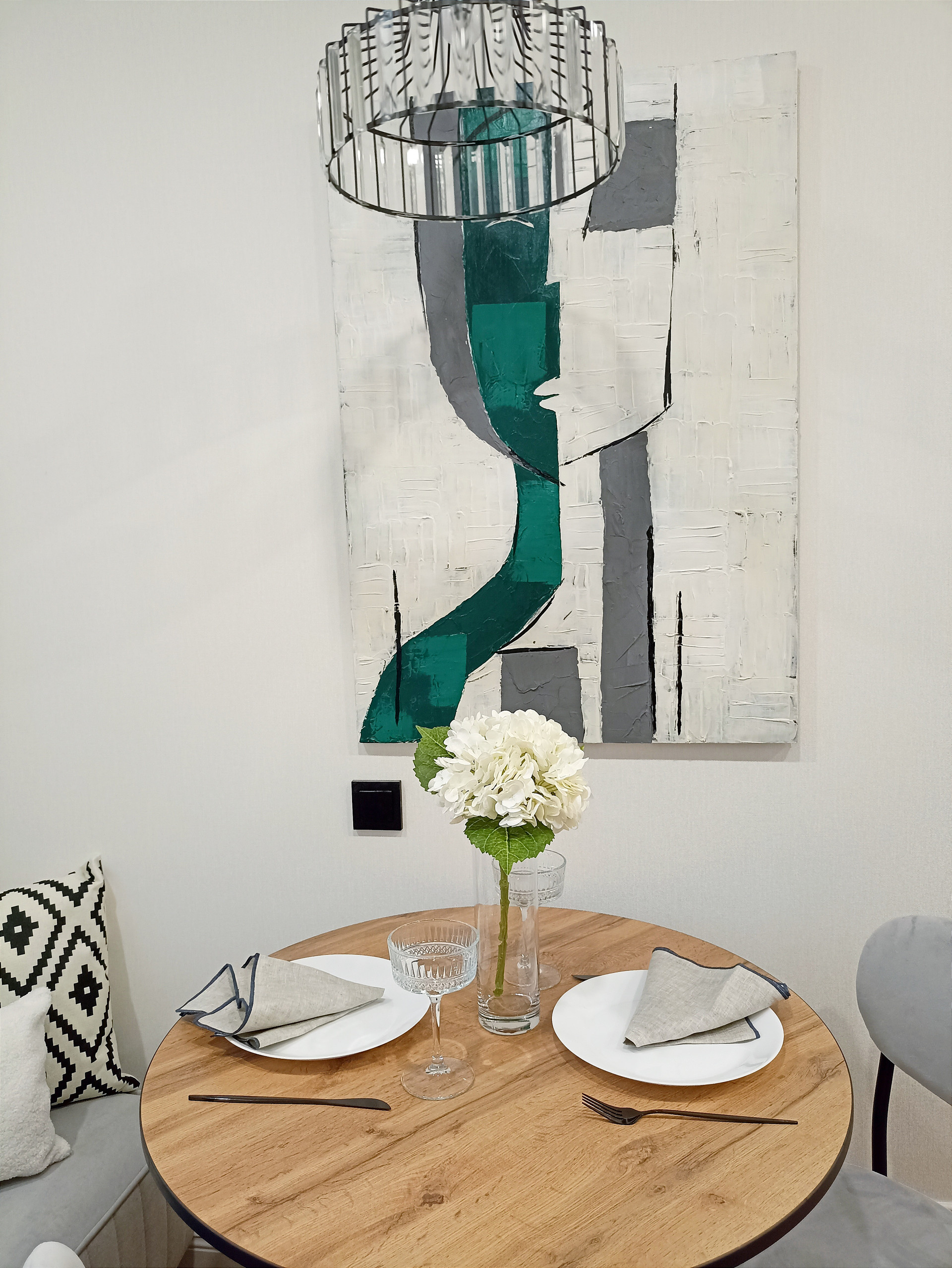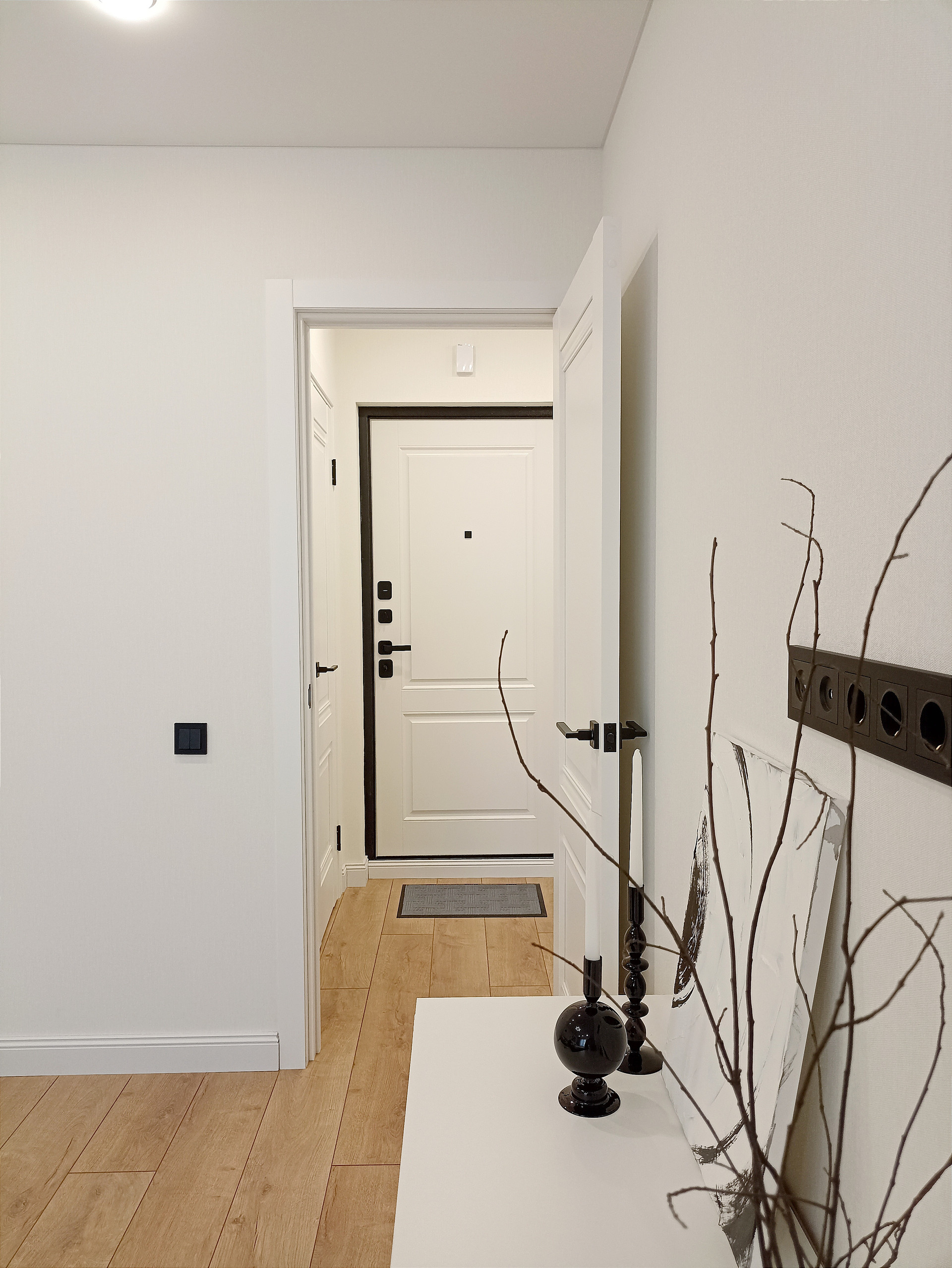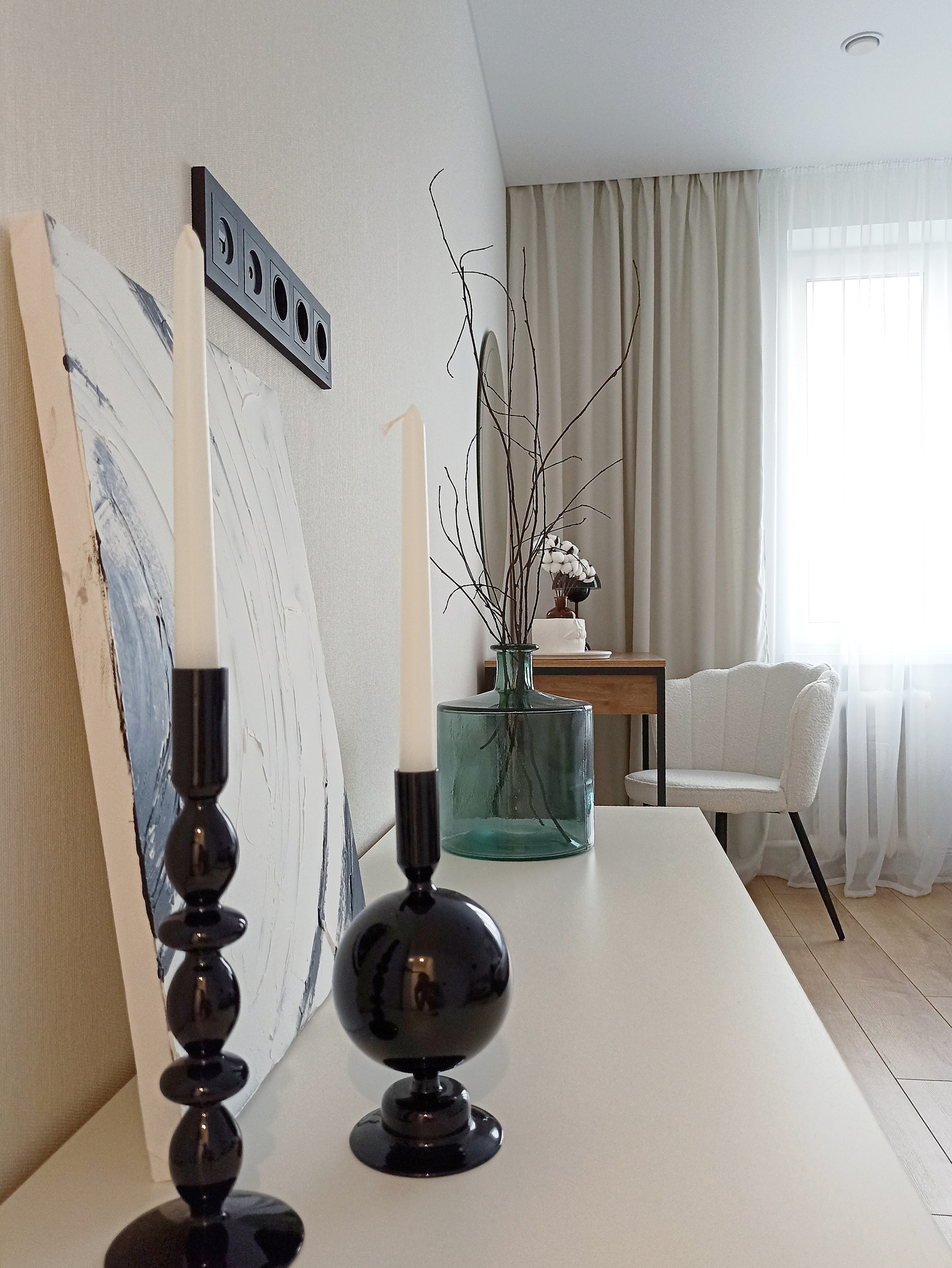 В квартире продуманы несколько сценариев использования света. Главной изюминкой является "мастер свет". Уходя из квартиры весь свет выключается нажатием одной клавиши.