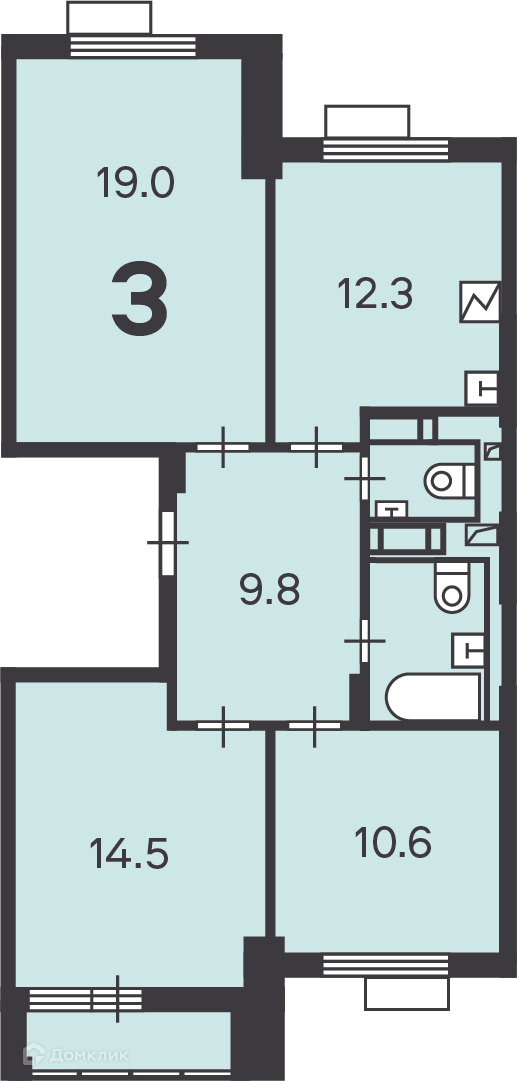 Количество комнат 3