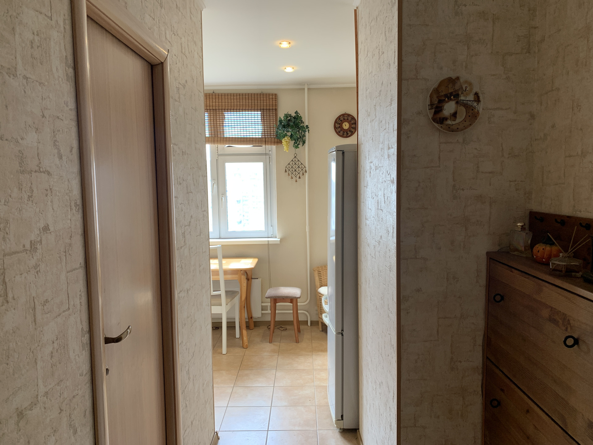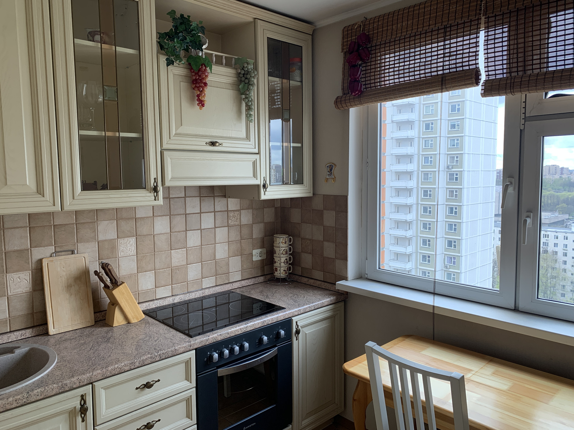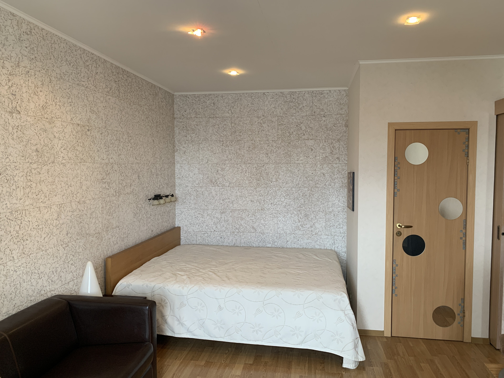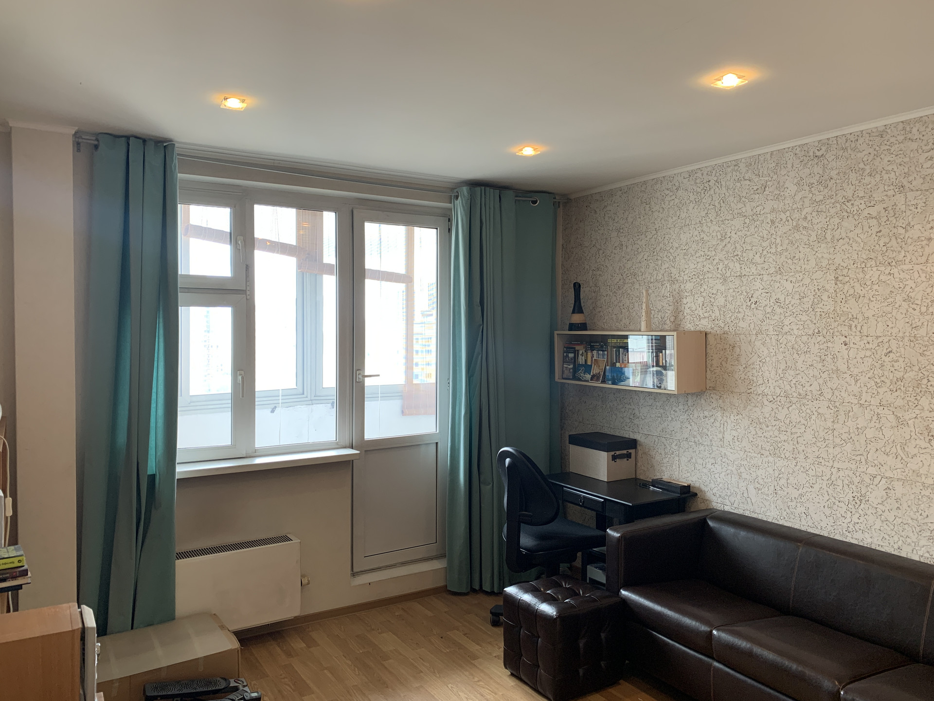 Квартира с ремонтом и мебелью. Окна на юго-запад. Хороший вид из окна, нет эффекта «окна в окна». В фото есть вид из окна. Квартира чистая, в хорошем состоянии, в ней практически никто не жил. Есть кондиционер. Пол кухни и коридора кафель, комната - ламинат. Стены в комнате – натуральная пробка. В комнате оборудована обособленная небольшая гардеробная комната.