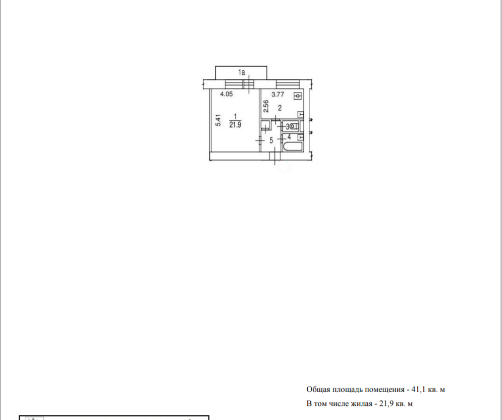 Общая площадь 41.1 м2